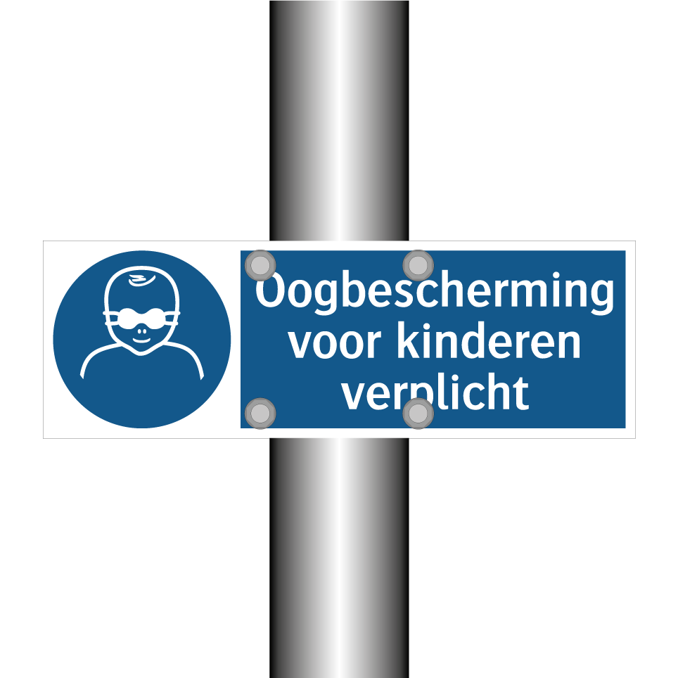 Verplichte bord met de tekst Oogbescherming voor kinderen verplicht