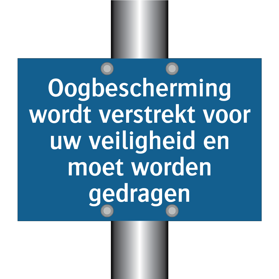 Verplichte bord met de tekst Oogbescherming wordt verstrekt voor uw veiligheid en moet worden gedragen