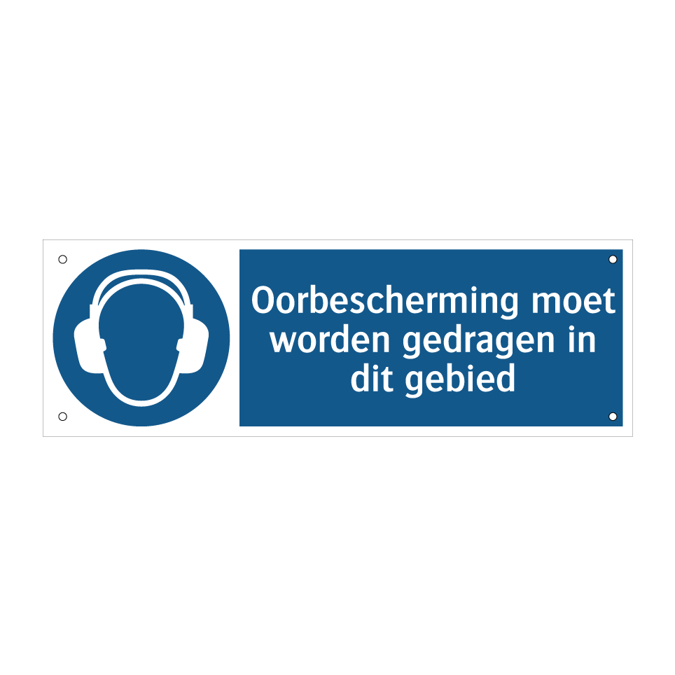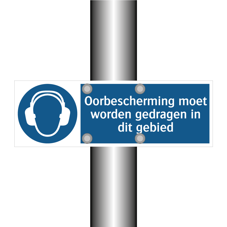 Verplichte bord met de tekst Oorbescherming moet worden gedragen in dit gebied