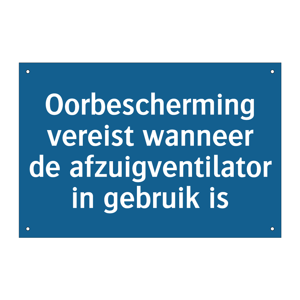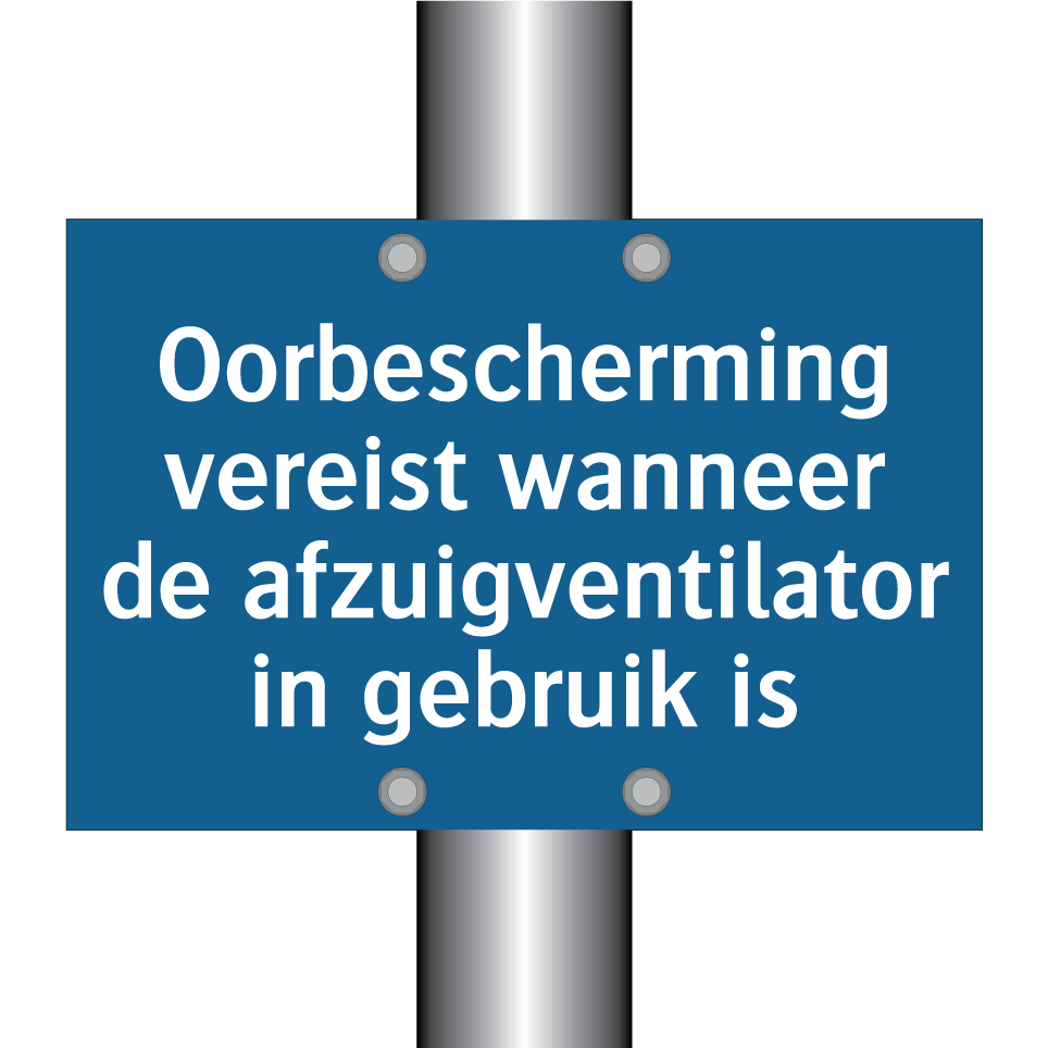 Verplichte bord met de tekst Oorbescherming vereist wanneer de afzuigventilator in gebruik is