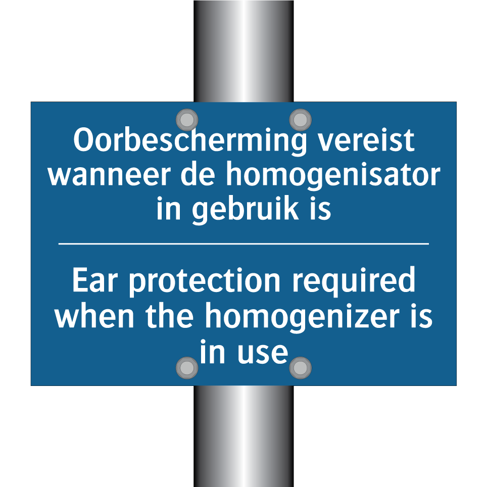 Verplichte bord met de tekst Oorbescherming vereist wanneer de homogenisator in gebruik is - Ear protection required when the homogenizer is in use