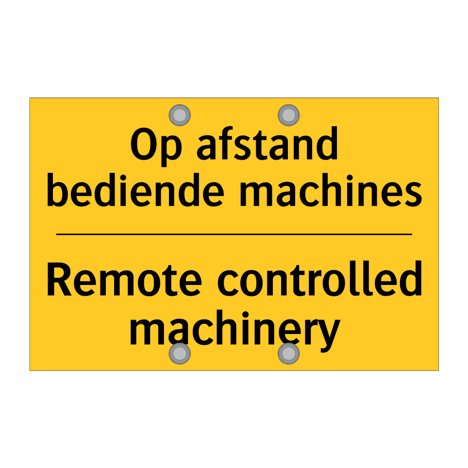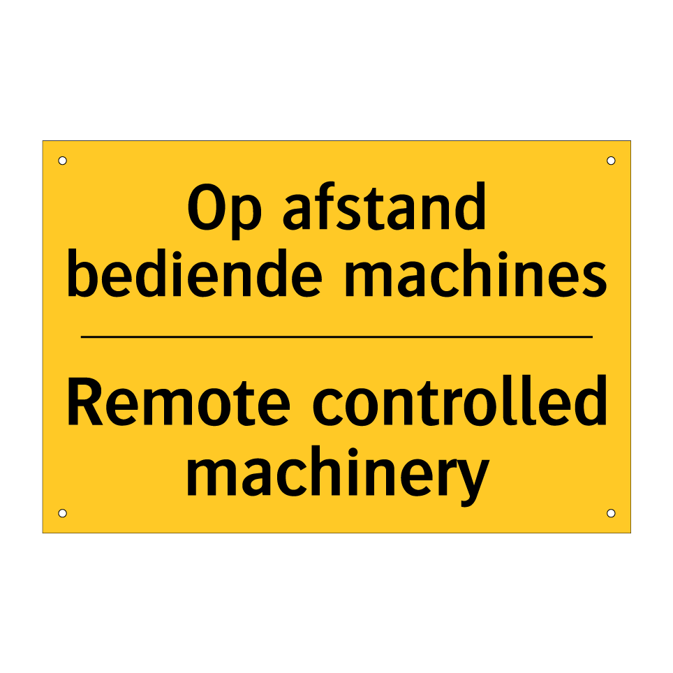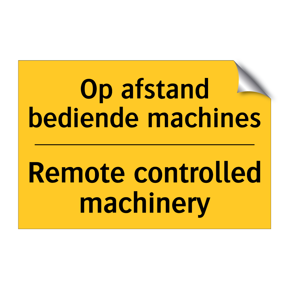 Waarschuwingsbord met de tekst Op afstand bediende machines / Remote controlled machinery