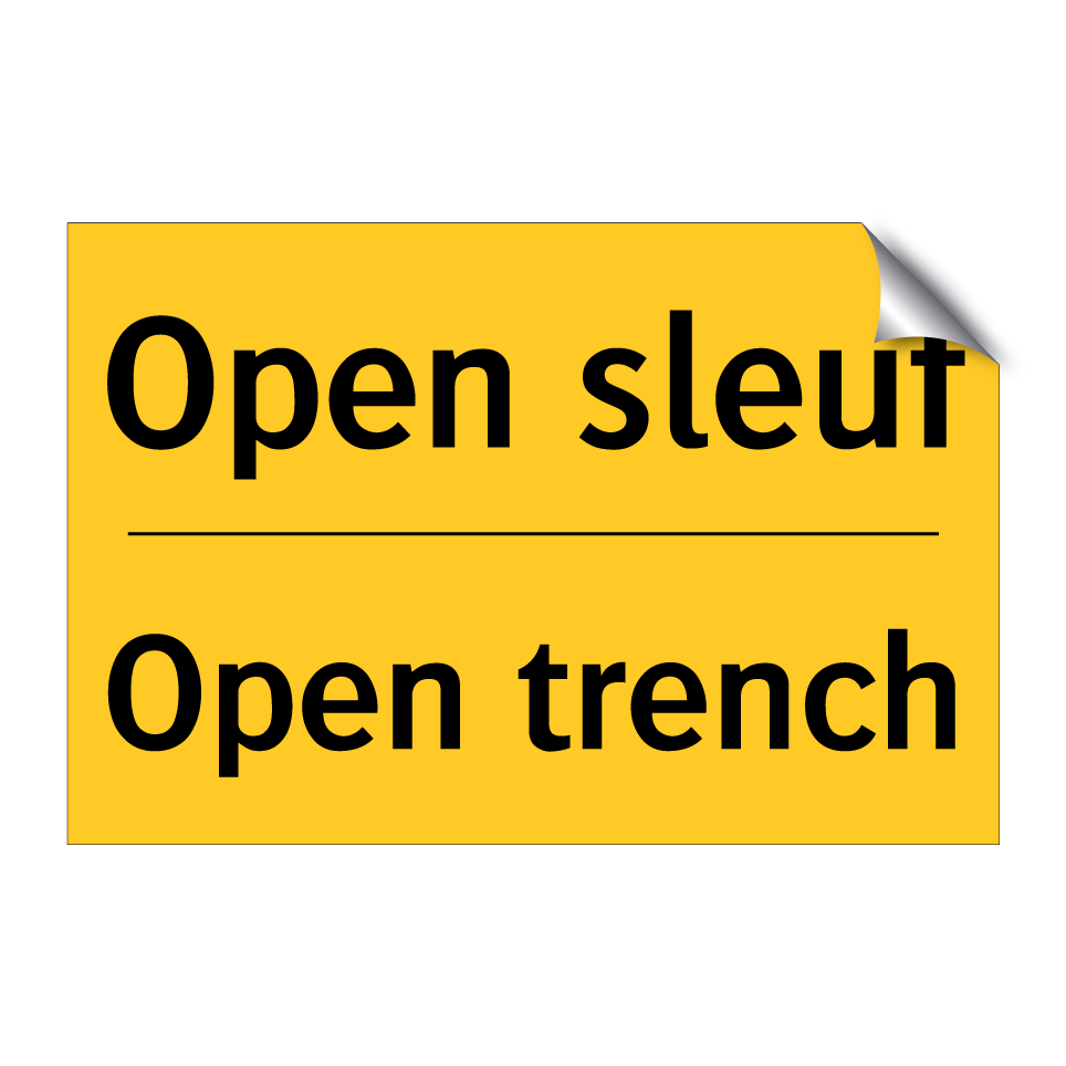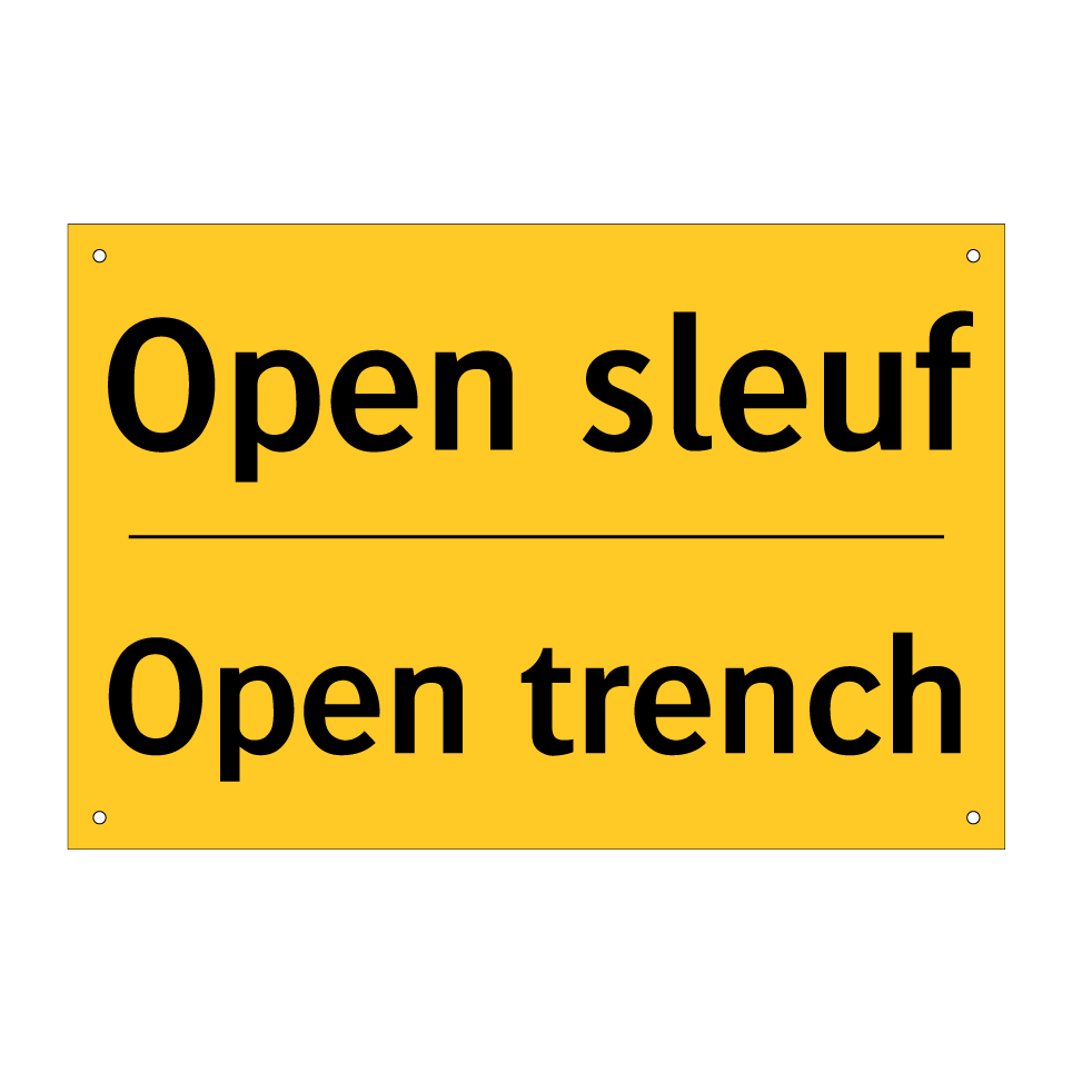 Waarschuwingsbord met de tekst Open sleuf / Open trench