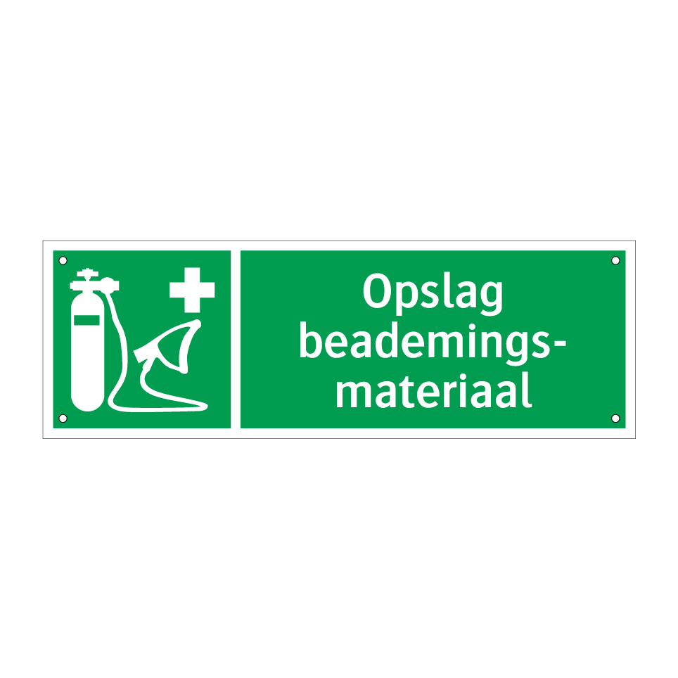 Deze noodbord is essentieel voor elke omgeving waar beademingsmateriaal snel toegankelijk moet zijn. Plaats deze groene en witte noodbord op strategische locaties zoals ziekenhuizen, klinieken, laboratoria en andere medische faciliteiten. Het duidelijke symbool en de tekst zorgen ervoor dat iedereen onmiddellijk weet waar het beademingsapparatuur zich bevindt in geval van nood. Deze noodbord kan ook nuttig zijn in sportcentra, zwembaden en andere openbare ruimtes waar snelle toegang tot beademingsmateriaal levens kan redden. Zorg ervoor dat deze noodbord goed zichtbaar is en gemakkelijk te bereiken voor alle gebruikers.
