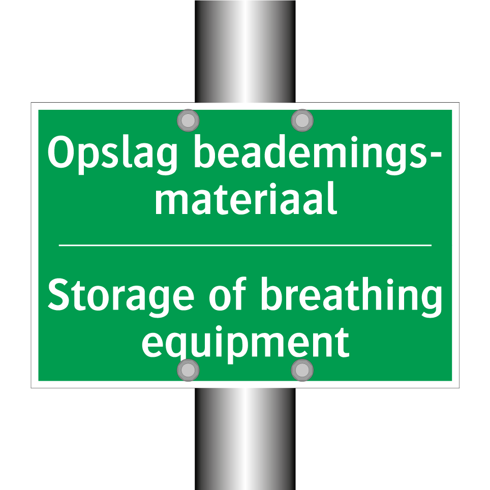 Noodbord met tekst Opslag beademings- materiaal / Storage of breathing equipment