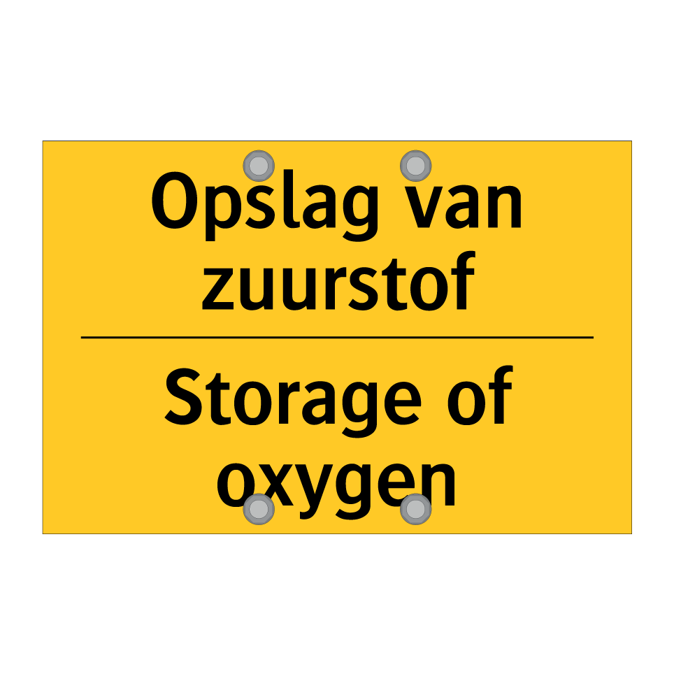 Waarschuwingsbord met de tekst Opslag van zuurstof / Storage of oxygen