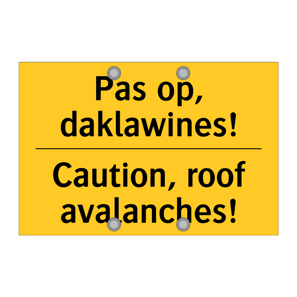 Waarschuwingsbord met de tekst Pas op, daklawines! / Caution, roof avalanches!