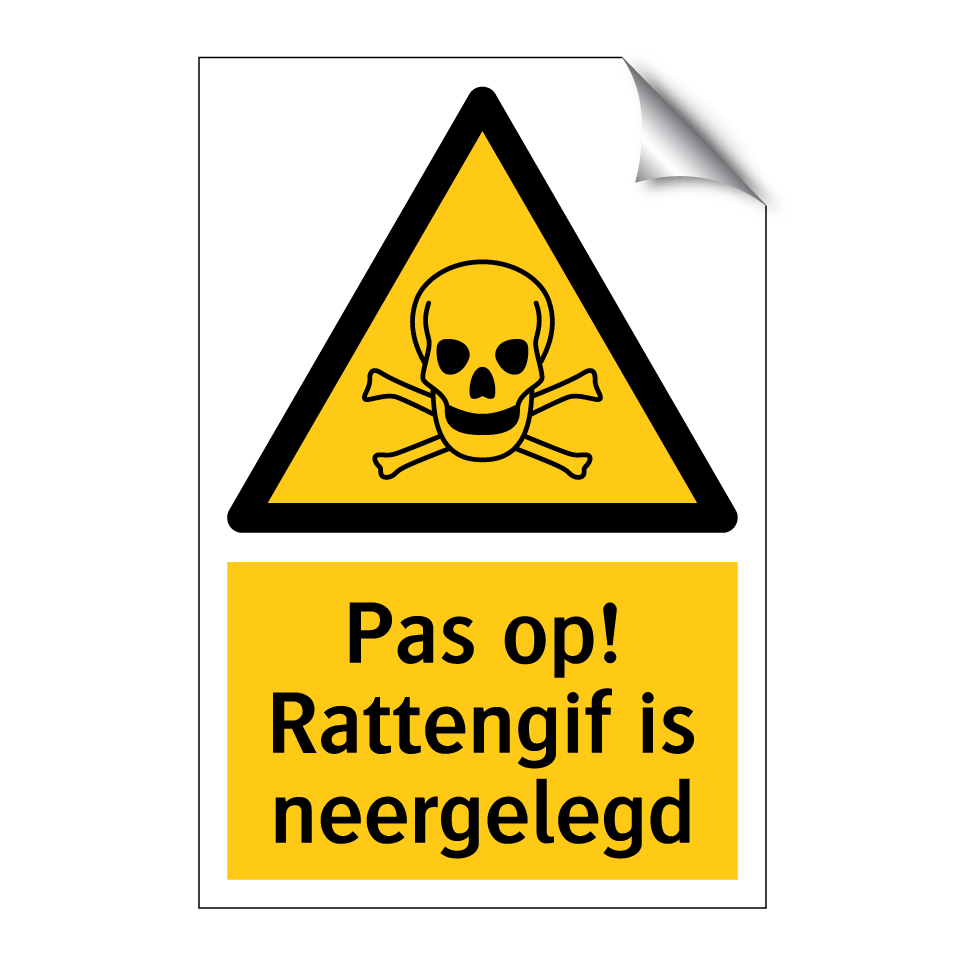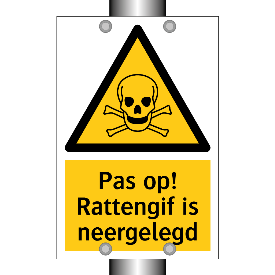 Waarschuwingsbord met de tekst Pas op! Rattengif is neergelegd