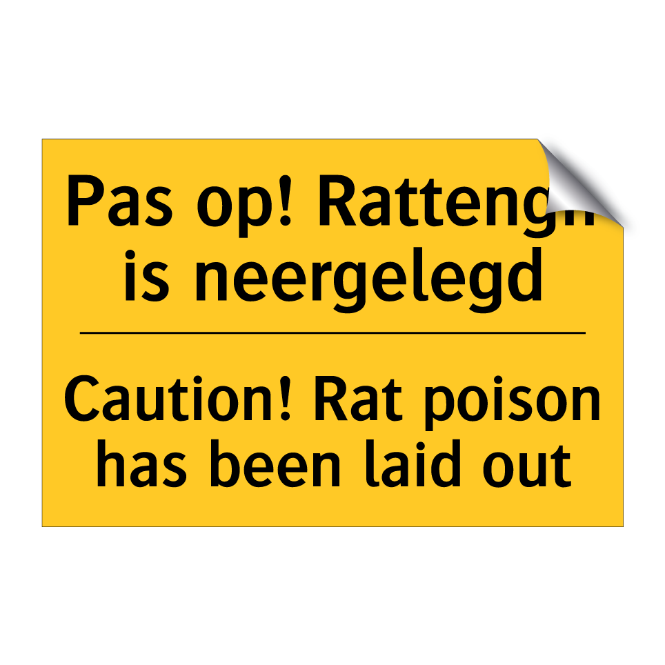 Waarschuwingsbord met de tekst Pas op! Rattengif is neergelegd / Caution! Rat poison has been laid out