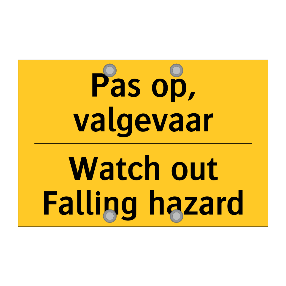 Waarschuwingsbord met de tekst Pas op, valgevaar / Watch out Falling hazard