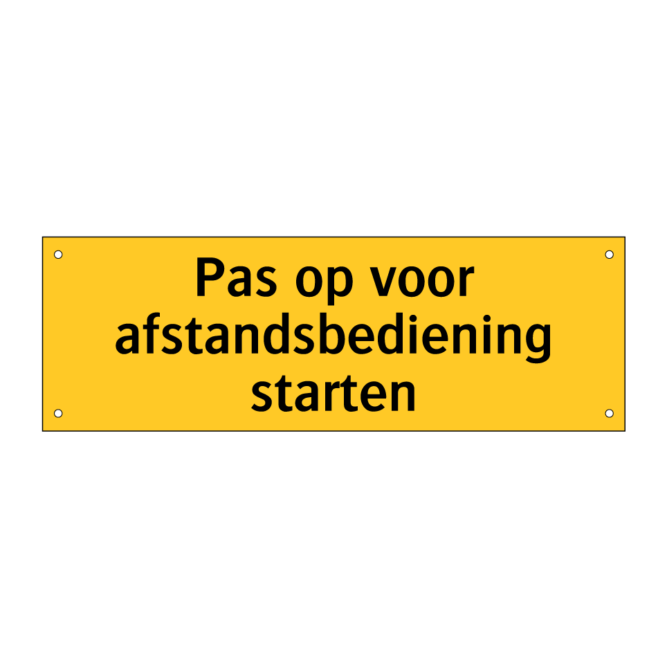 Waarschuwingsbord met de tekst Pas op voor afstandsbediening starten