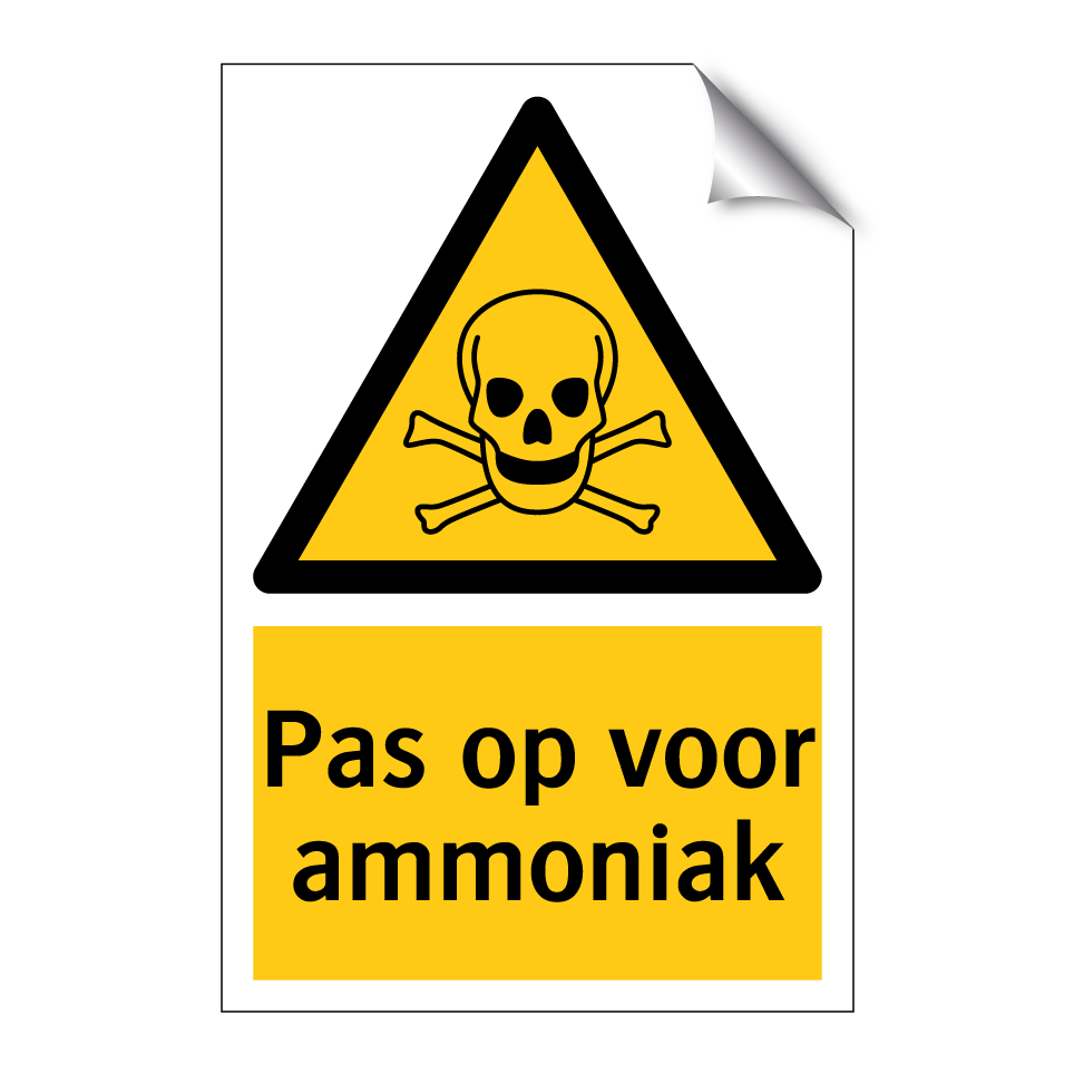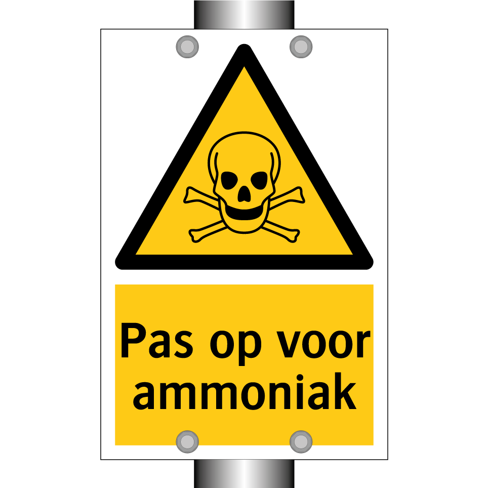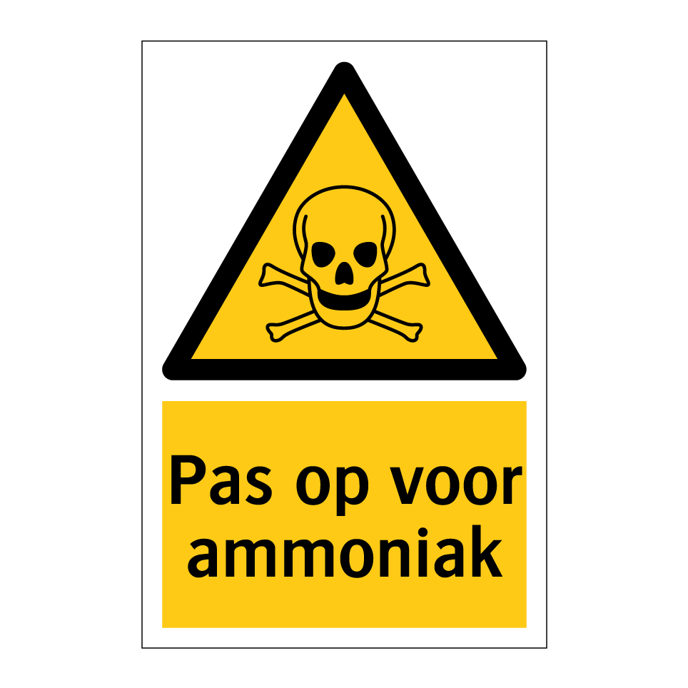 Waarschuwingsbord met de tekst Pas op voor ammoniak