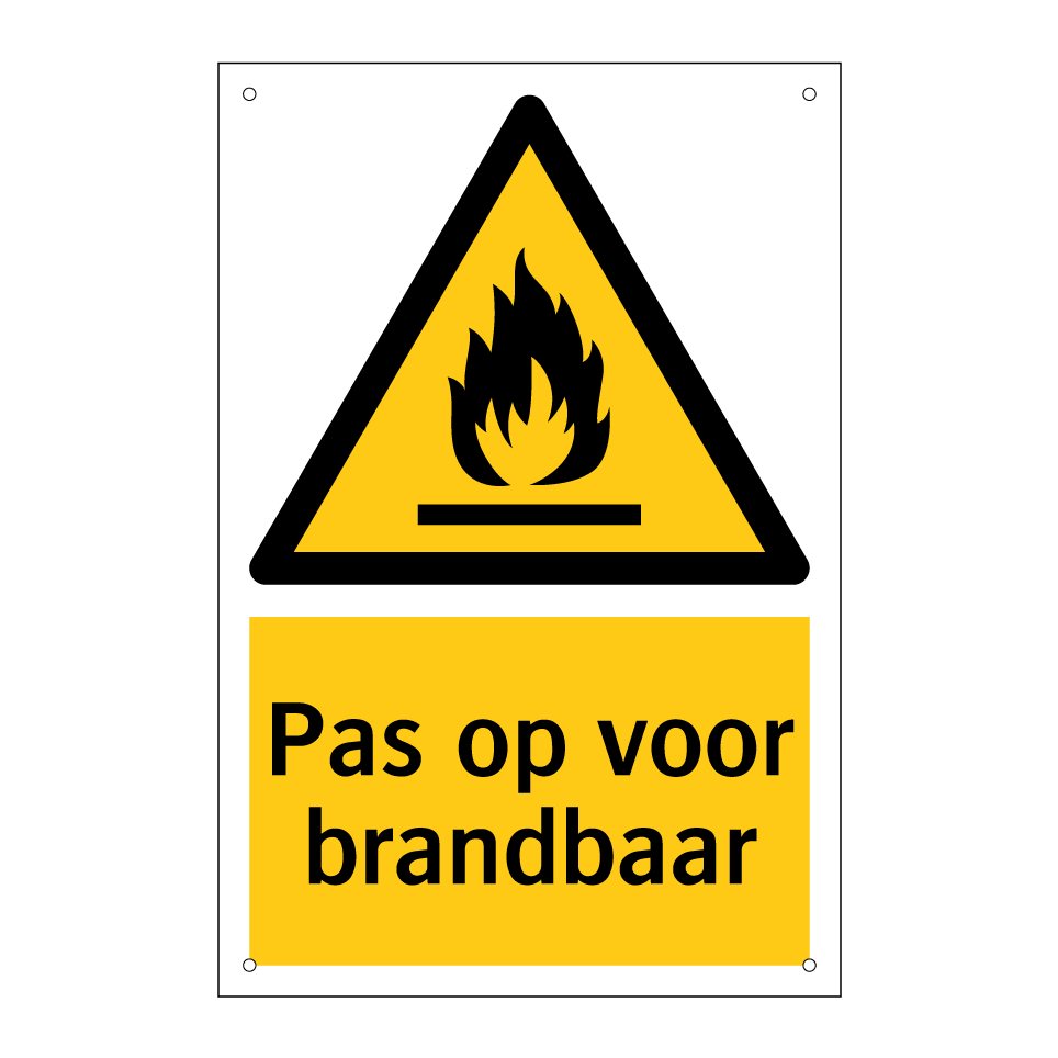 Waarschuwingsbord met de tekst Pas op voor brandbaar