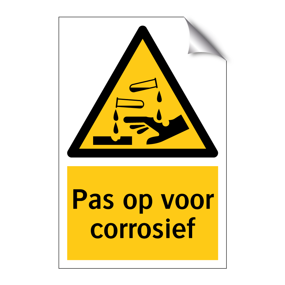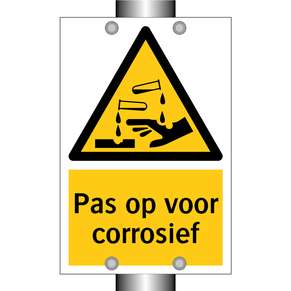Waarschuwingsbord met de tekst Pas op voor corrosief