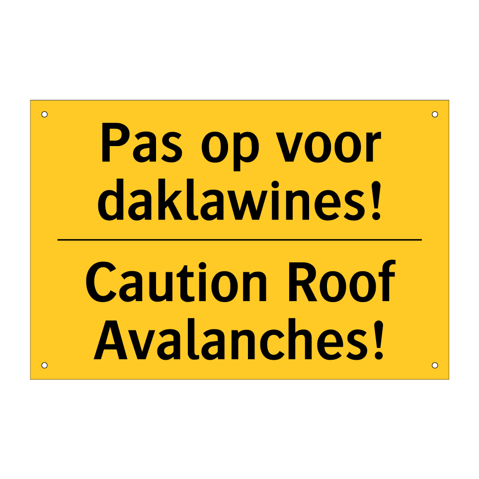 Waarschuwingsbord met de tekst Pas op voor daklawines! / Caution Roof Avalanches!