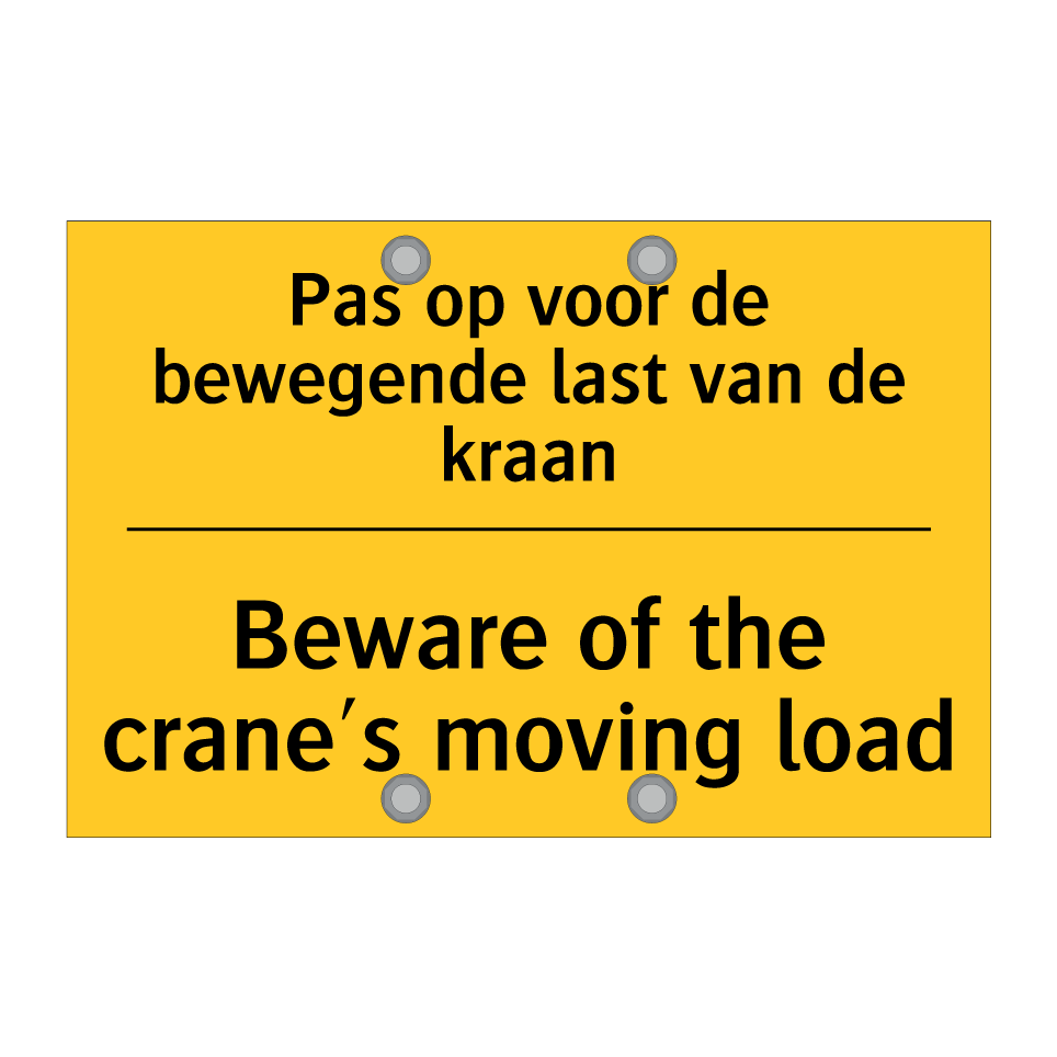 Waarschuwingsbord met de tekst Pas op voor de bewegende last van de kraan / Beware of the crane's moving load
