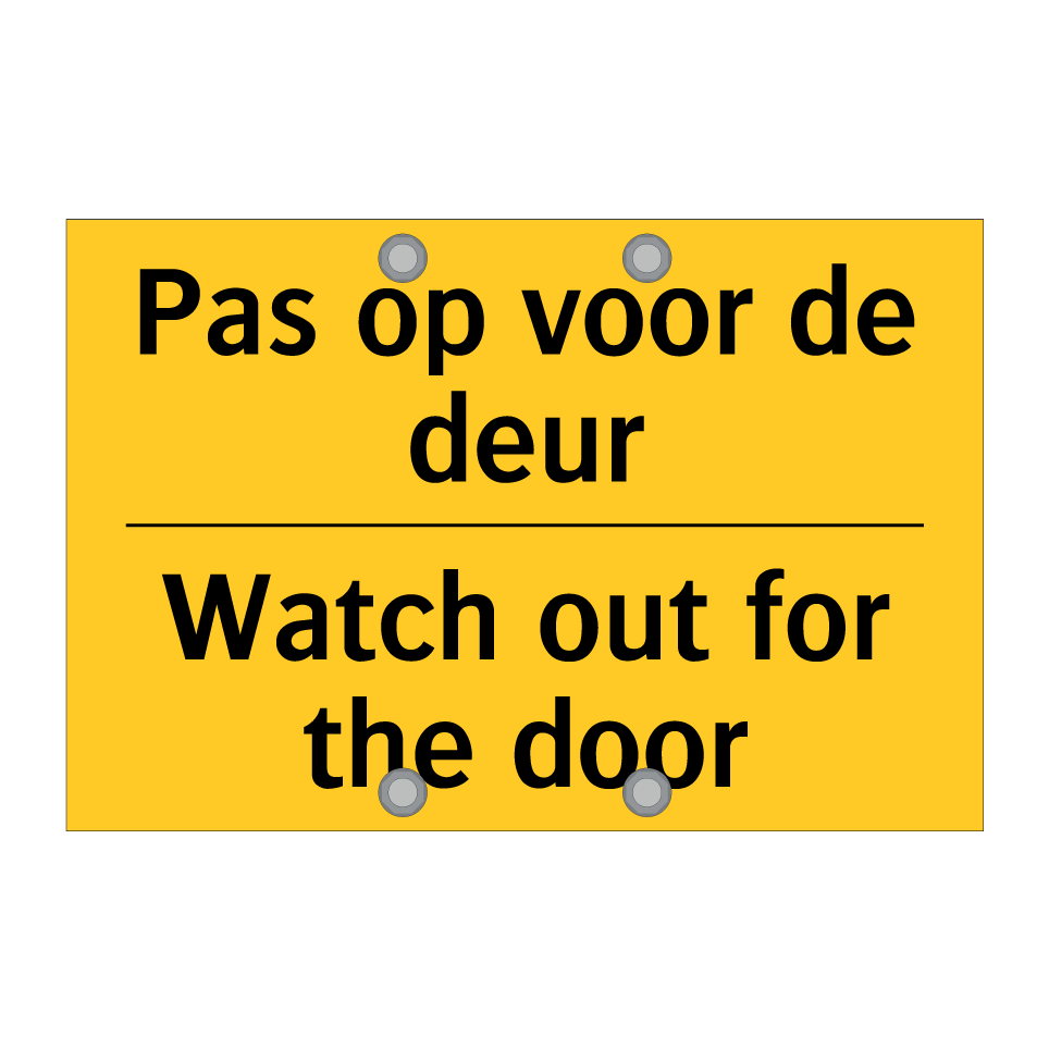 Waarschuwingsbord met de tekst Pas op voor de deur / Watch out for the door