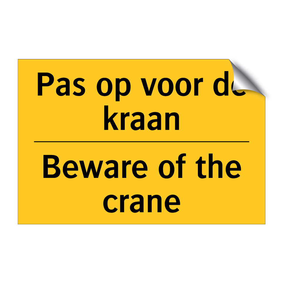 Waarschuwingsbord met de tekst Pas op voor de kraan / Beware of the crane