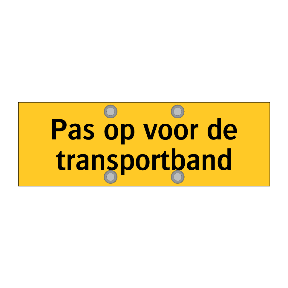 Waarschuwingsbord met de tekst Pas op voor de transportband