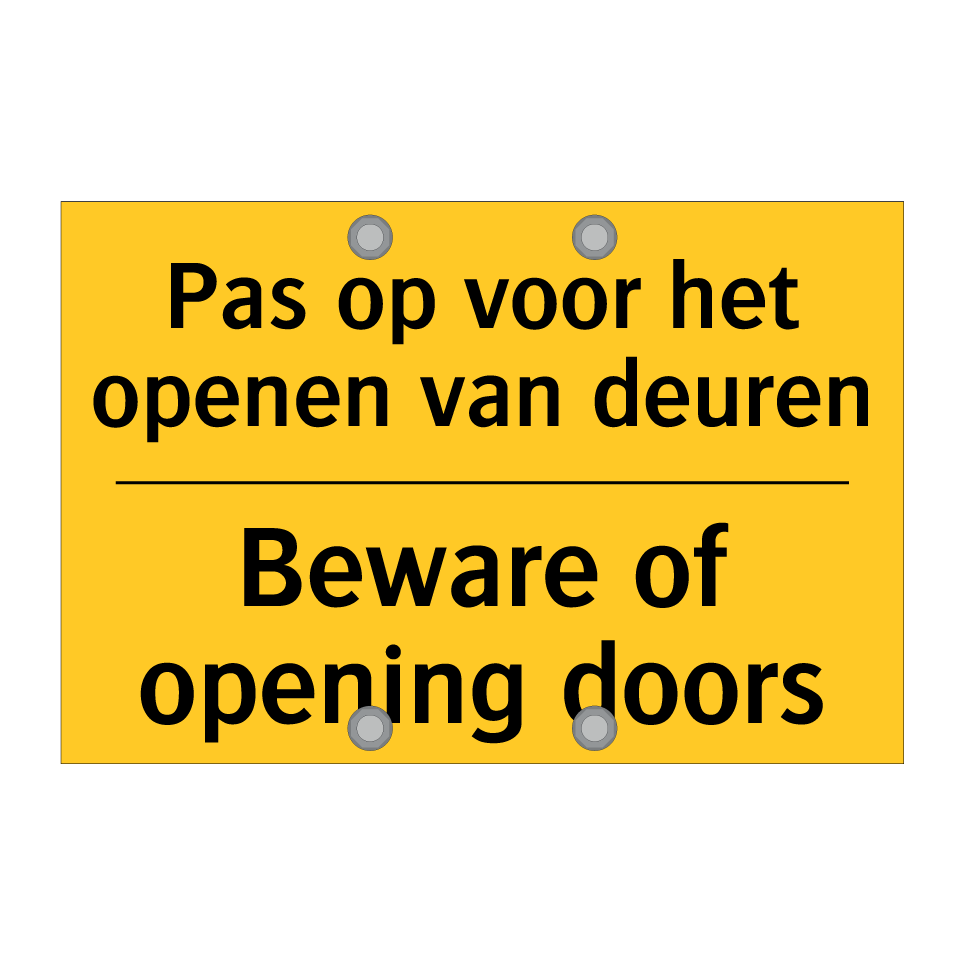 Waarschuwingsbord met de tekst Pas op voor het openen van deuren / Beware of opening doors