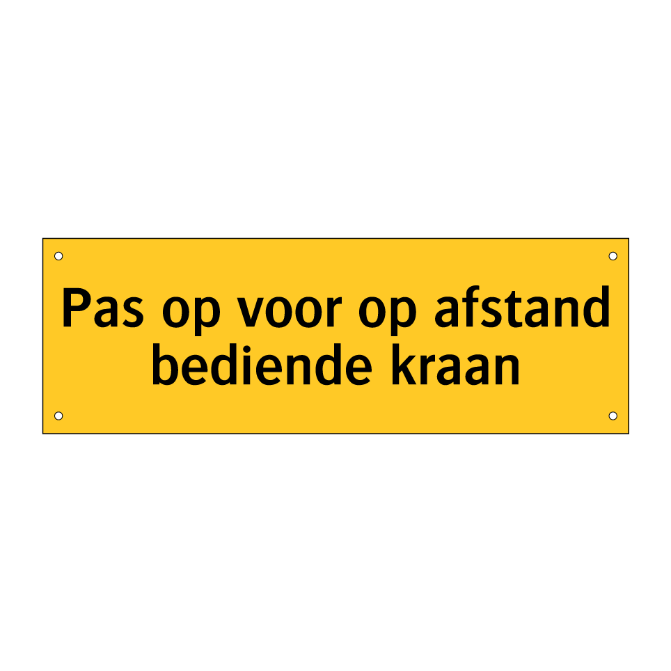 Waarschuwingsbord met de tekst Pas op voor op afstand bediende kraan