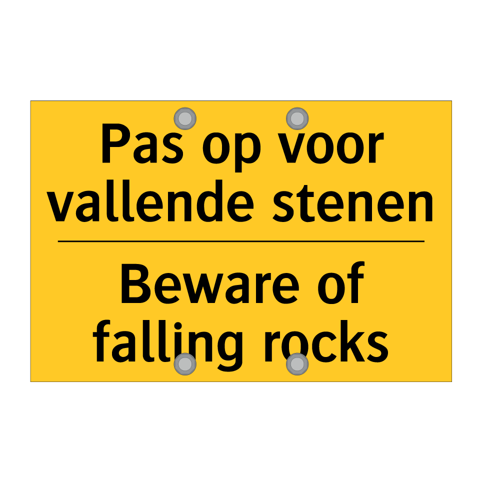 Waarschuwingsbord met de tekst Pas op voor vallende stenen / Beware of falling rocks