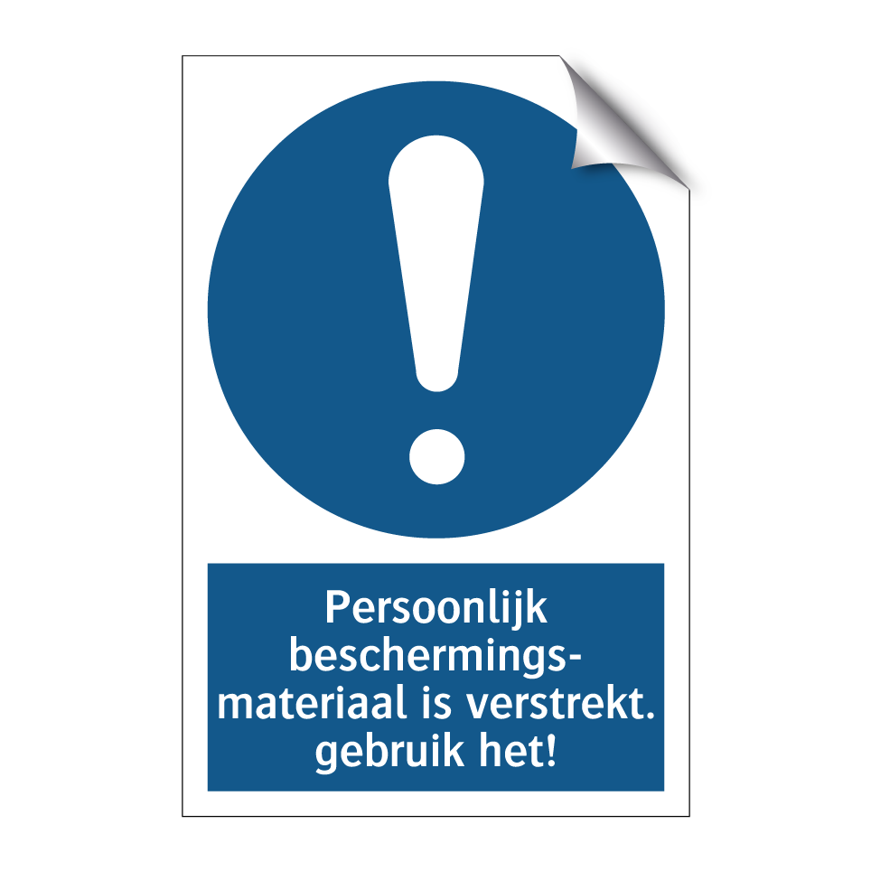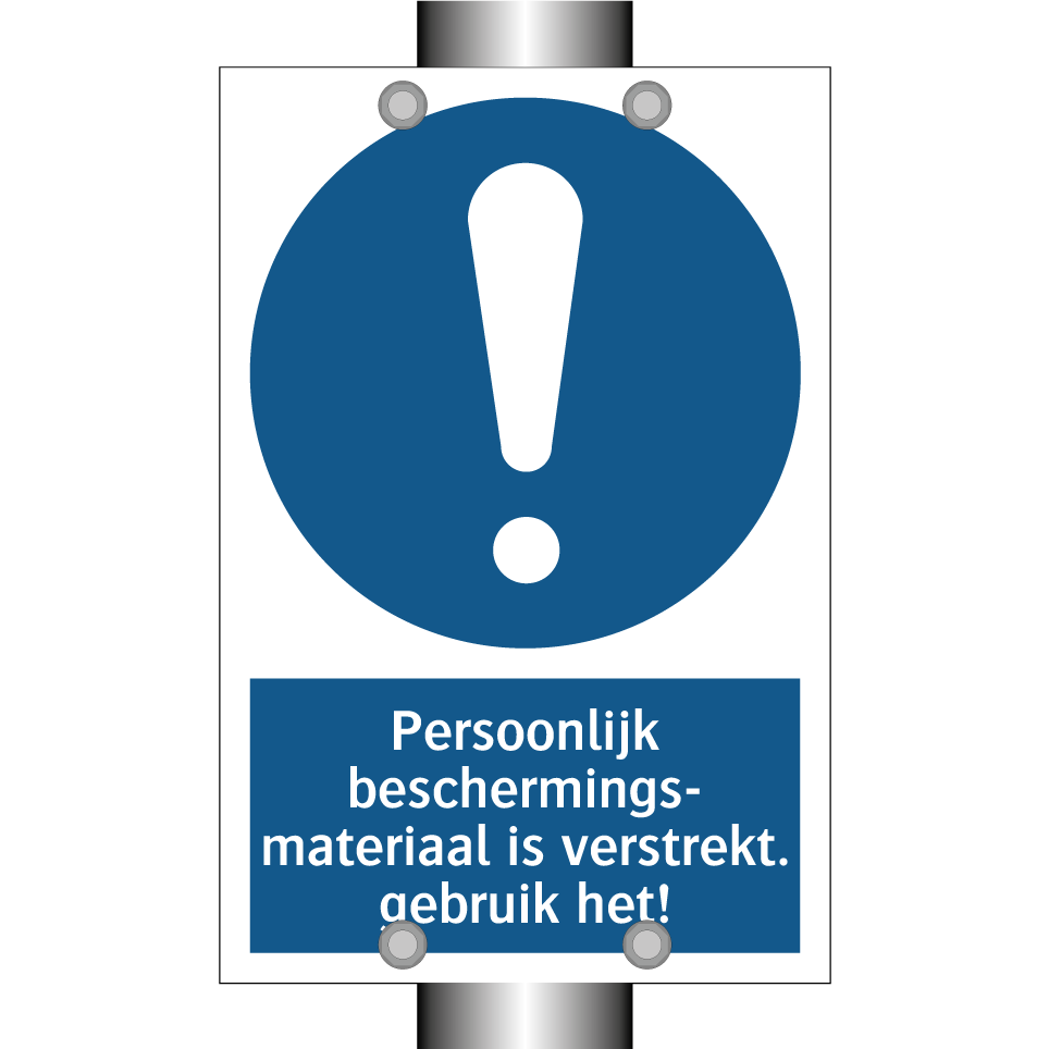 Verplichte bord met de tekst Persoonlijk beschermings- materiaal is verstrekt. gebruik het!