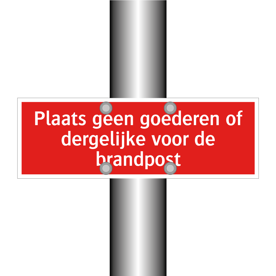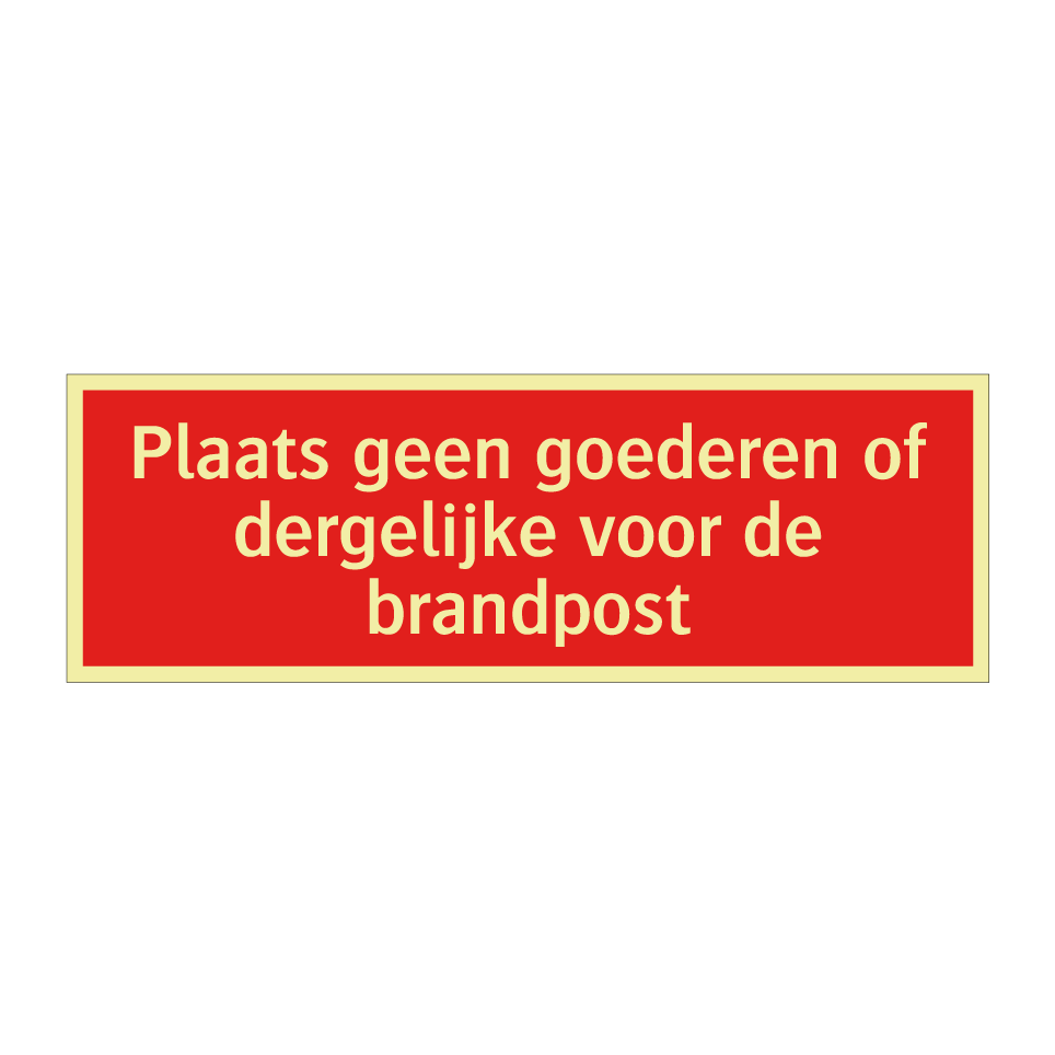 Brandbord met tekst Plaats geen goederen of dergelijke voor de brandpost