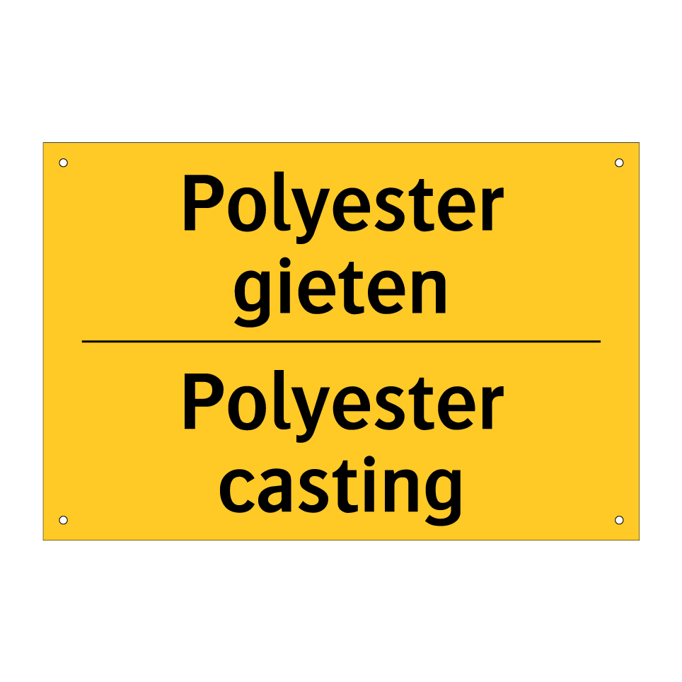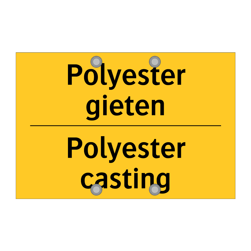 Waarschuwingsbord met de tekst Polyester gieten / Polyester casting