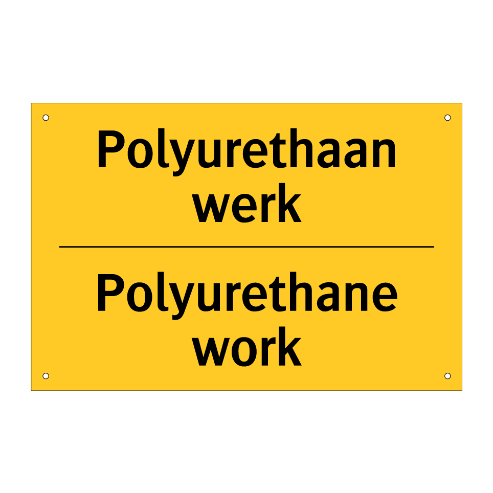 Waarschuwingsbord met de tekst Polyurethaan werk / Polyurethane work