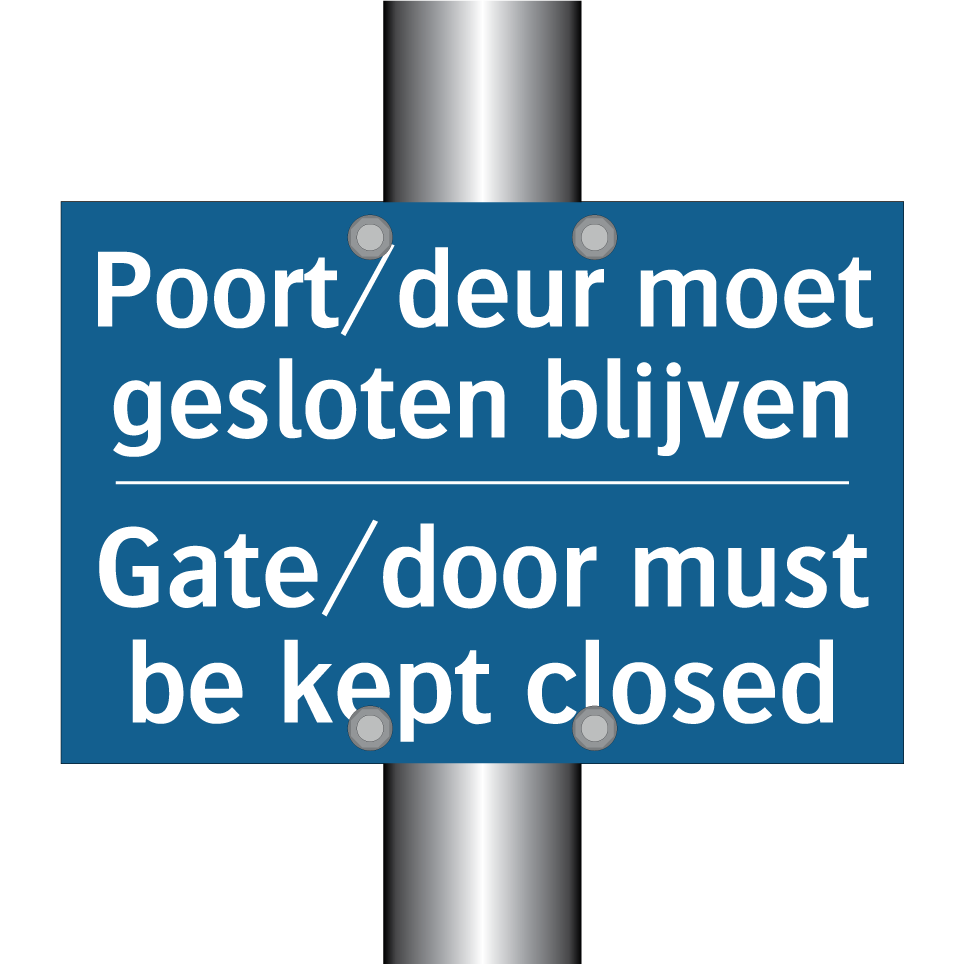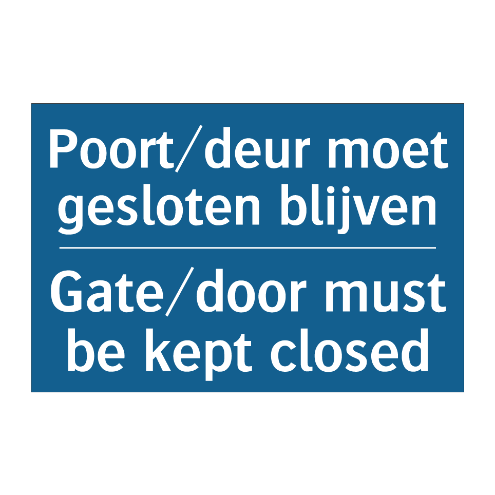 Verplichte bord met de tekst Poort/deur moet gesloten blijven - Gate/door must be kept closed