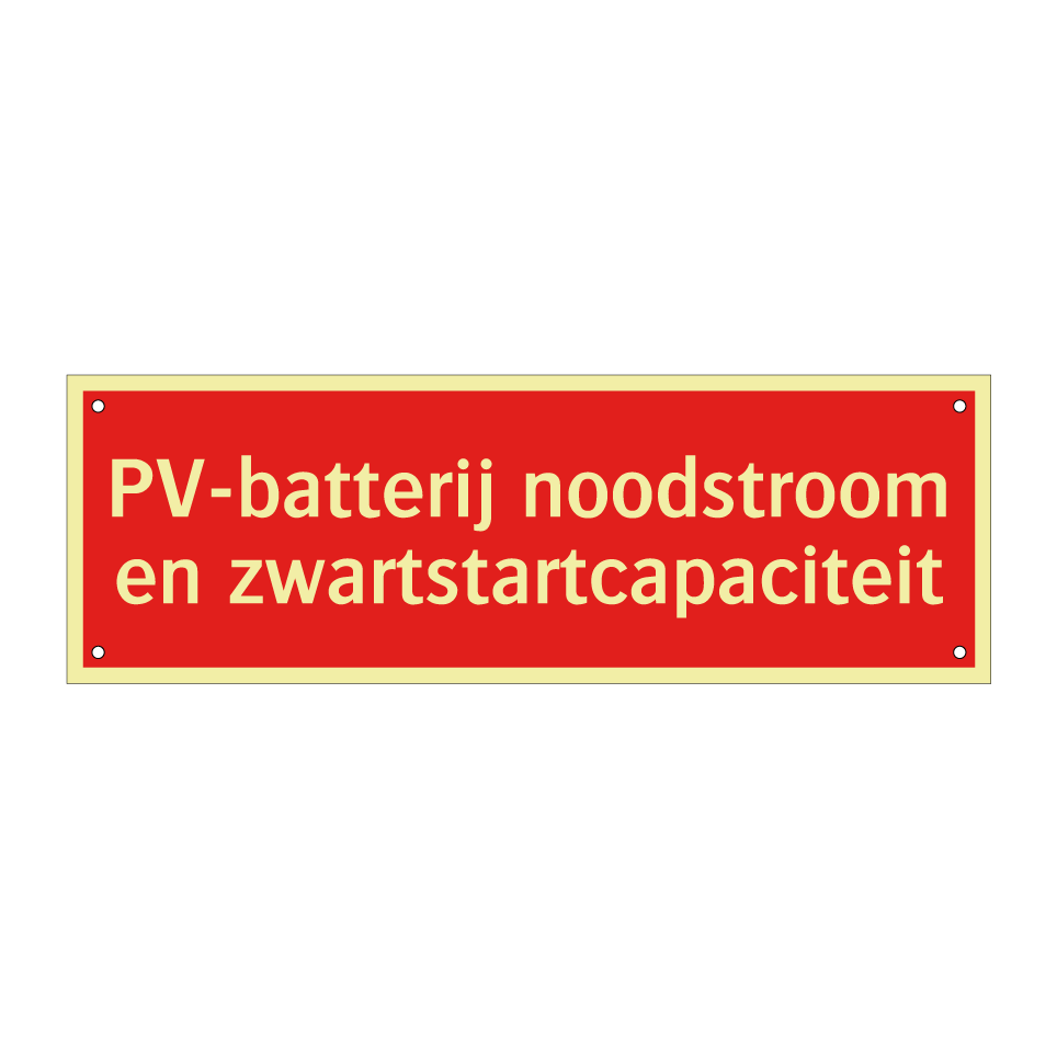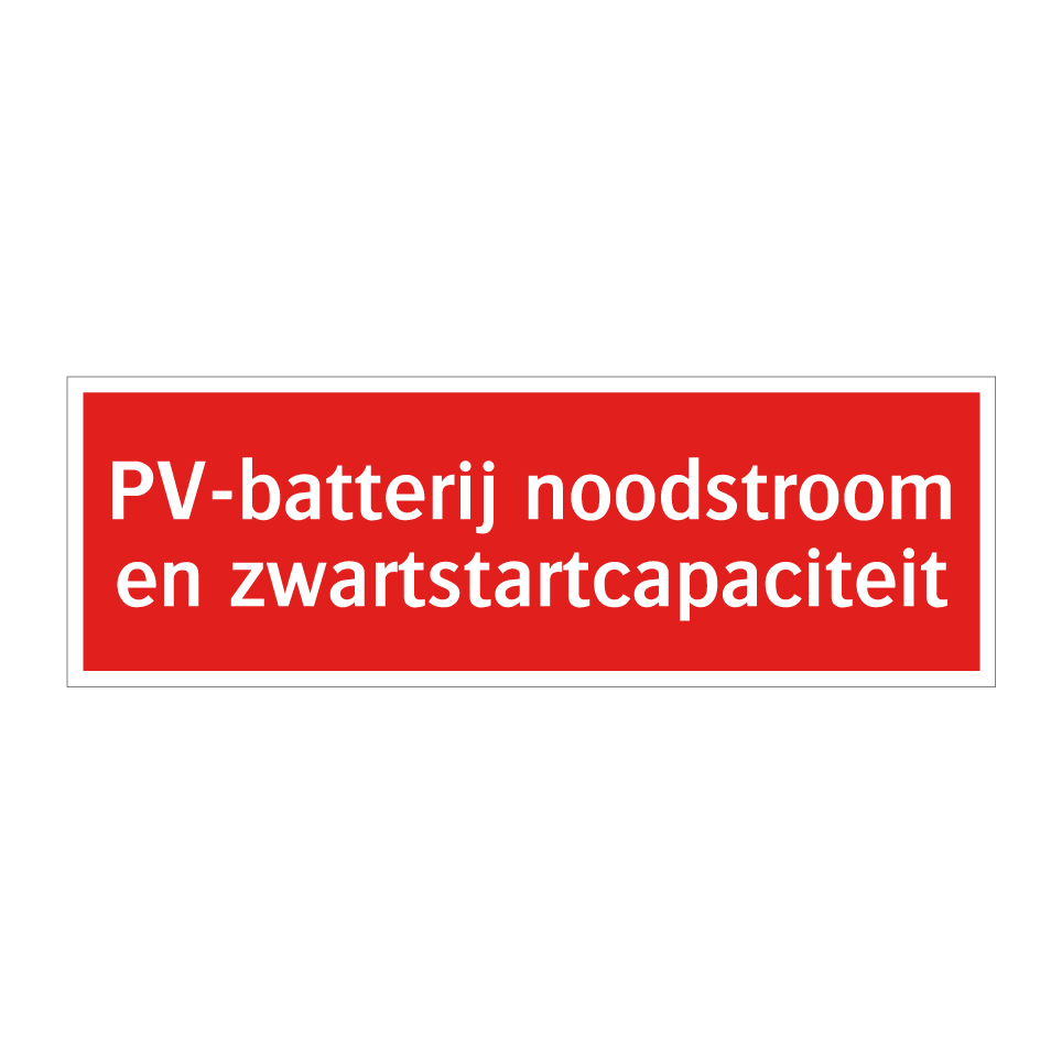 Brandbord met tekst PV-batterij noodstroom en zwartstartcapaciteit