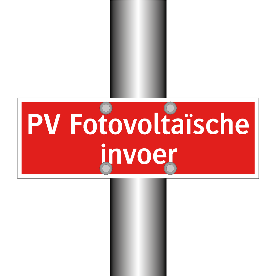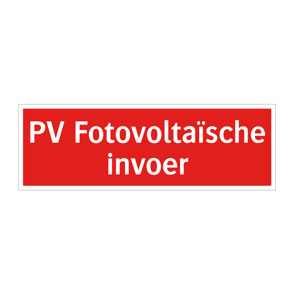 Brandbord met tekst PV Fotovoltaïsche invoer