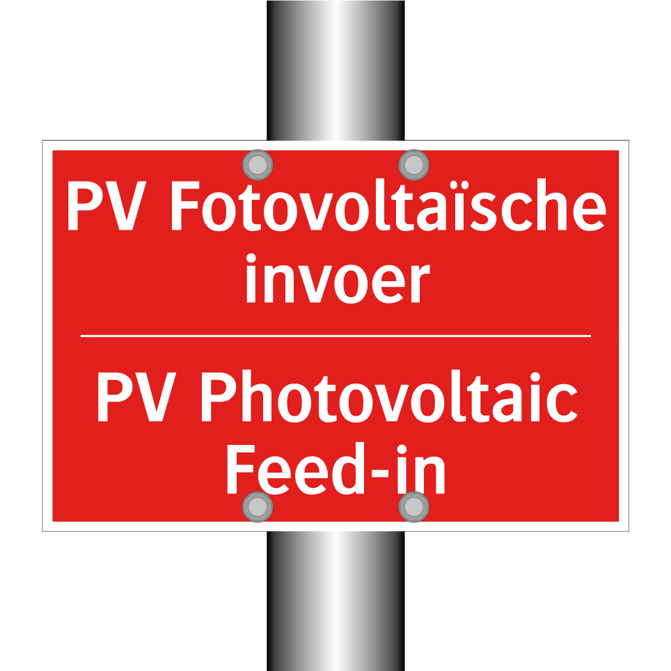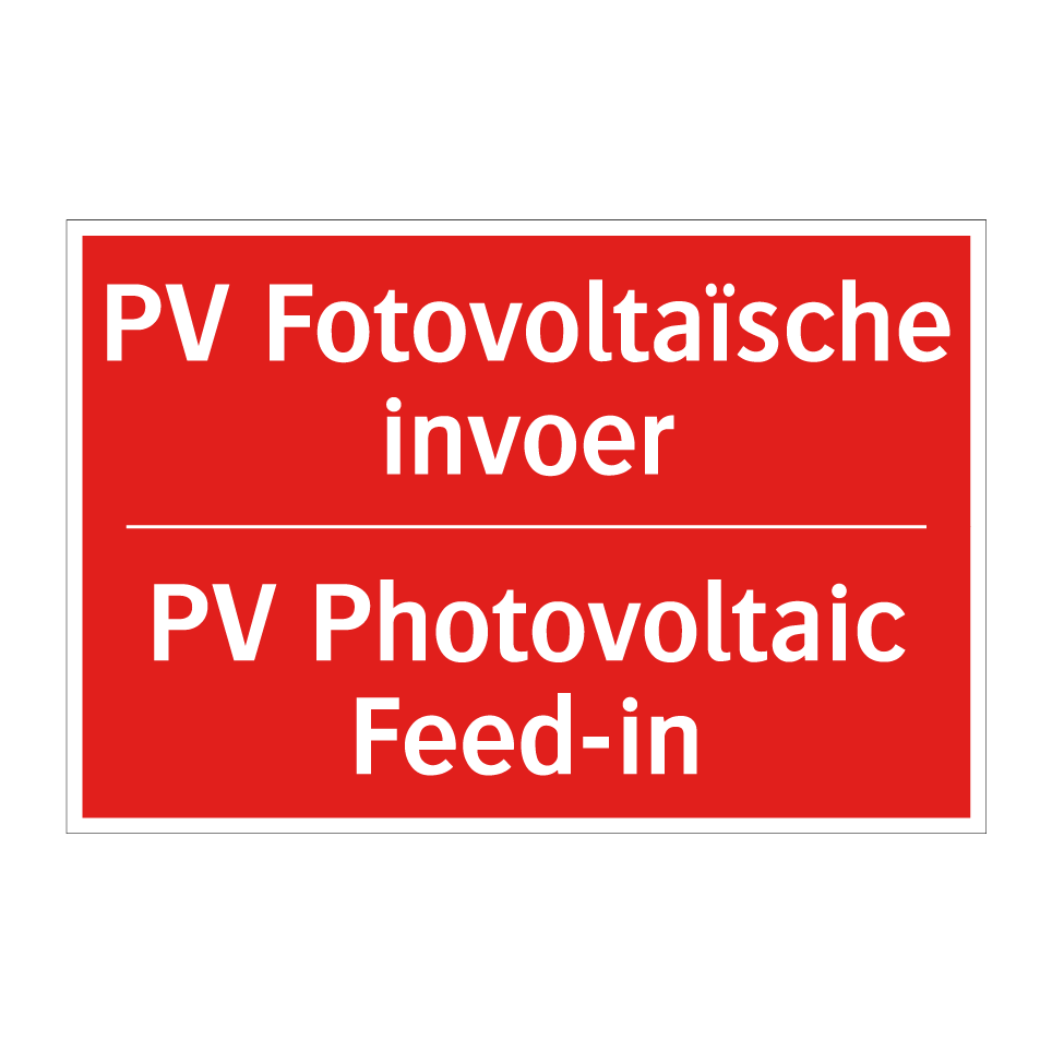 Brandbord met tekst PV Fotovoltaïsche invoer - PV Photovoltaic Feed-in