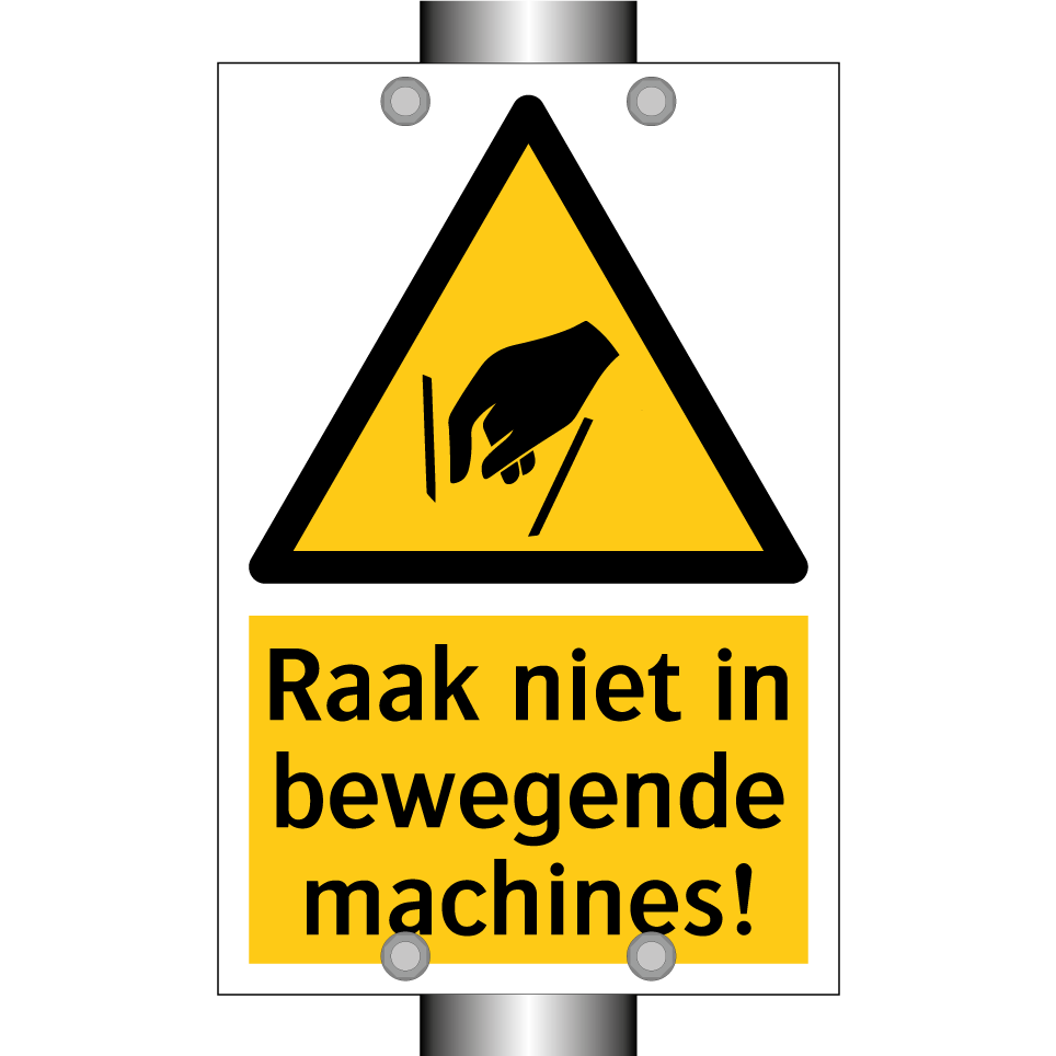 Waarschuwingsbord met de tekst Raak niet in bewegende machines!