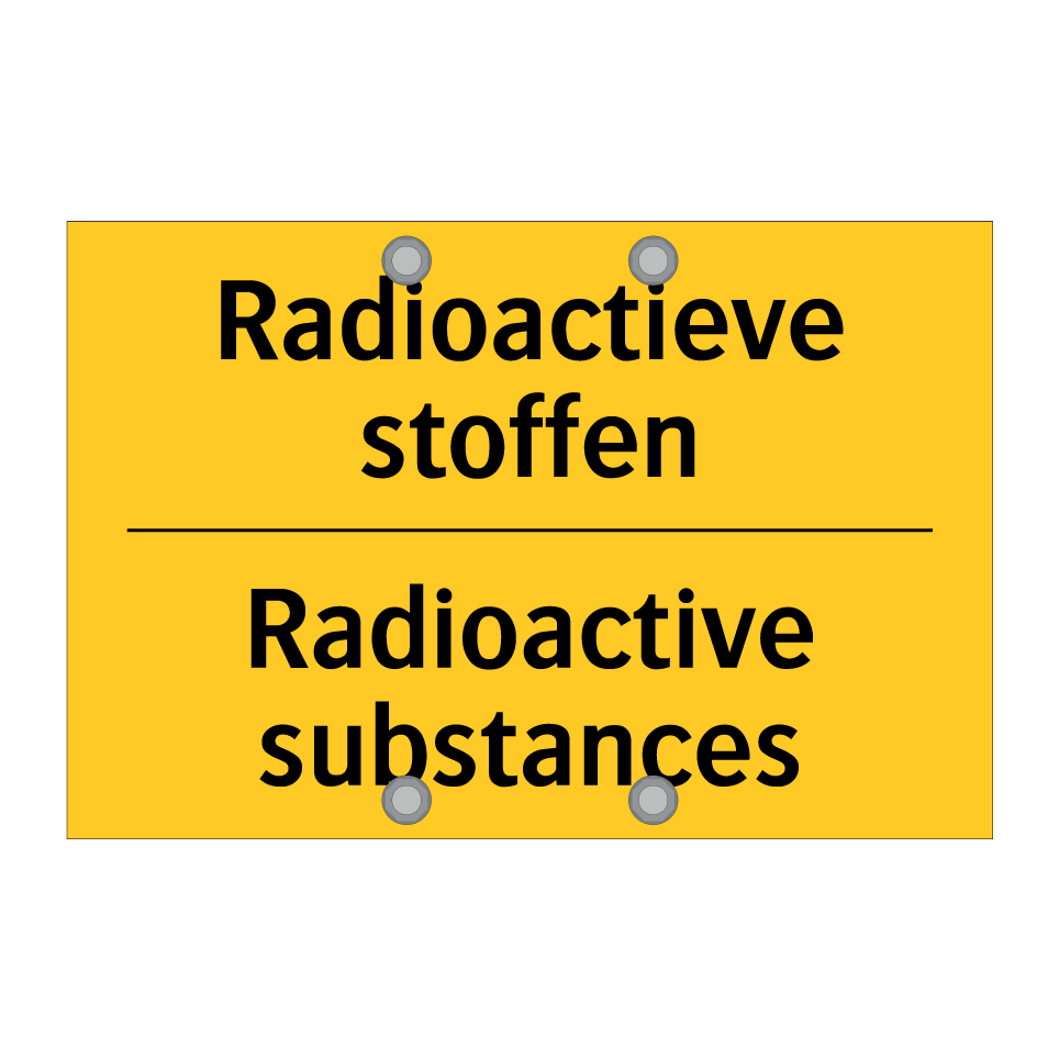Waarschuwingsbord met de tekst Radioactieve stoffen / Radioactive substances