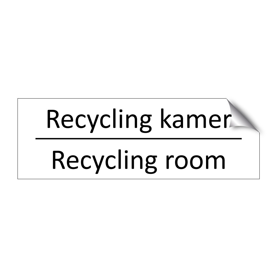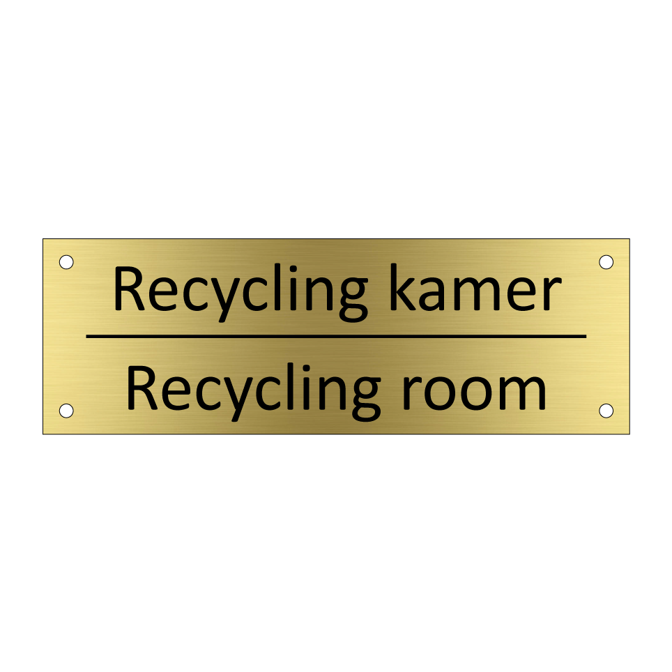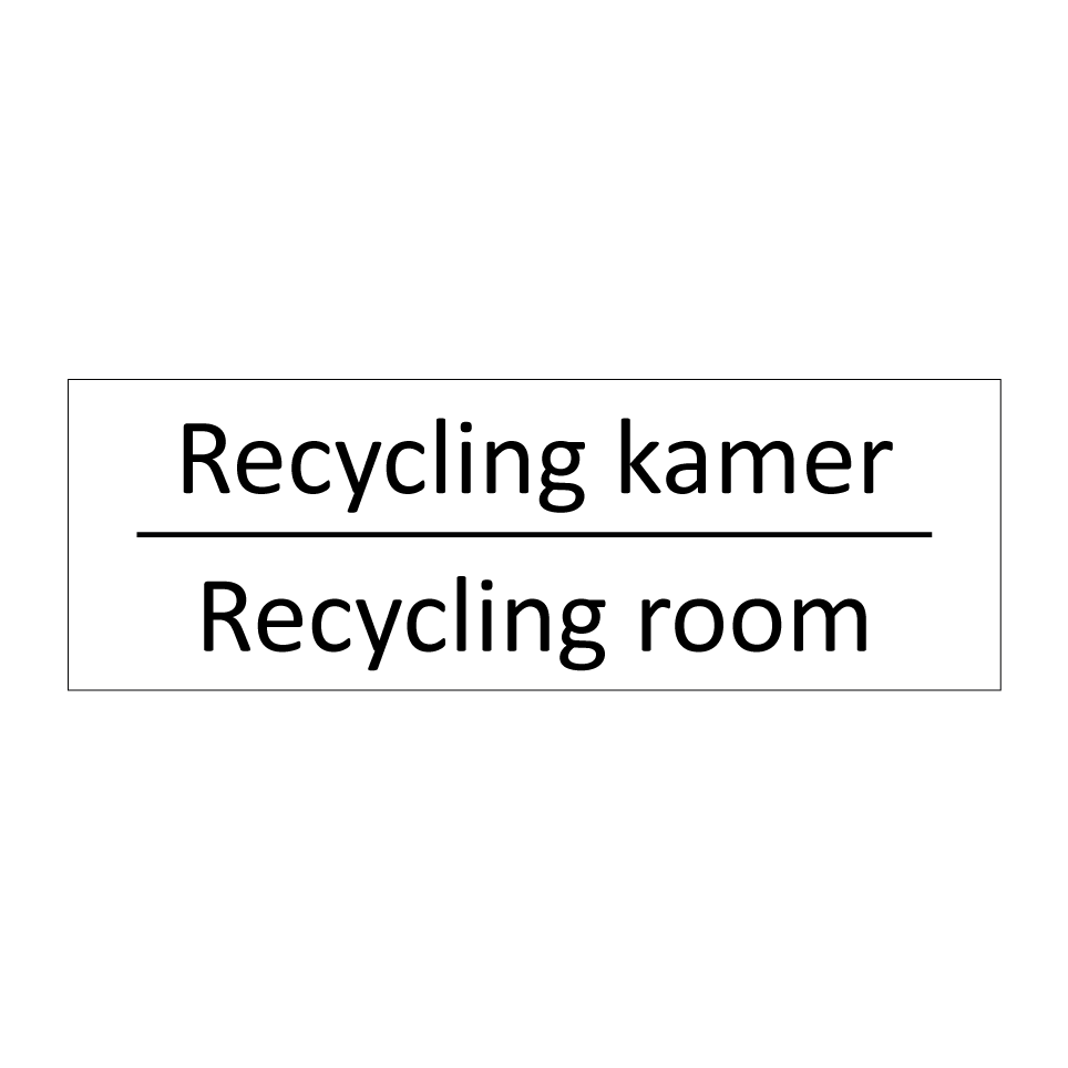 Informatiebord met tekst in het nederlands en engels. Dit bord luidt: Recycling kamer evenals met de engelse vertaling Recycling room.