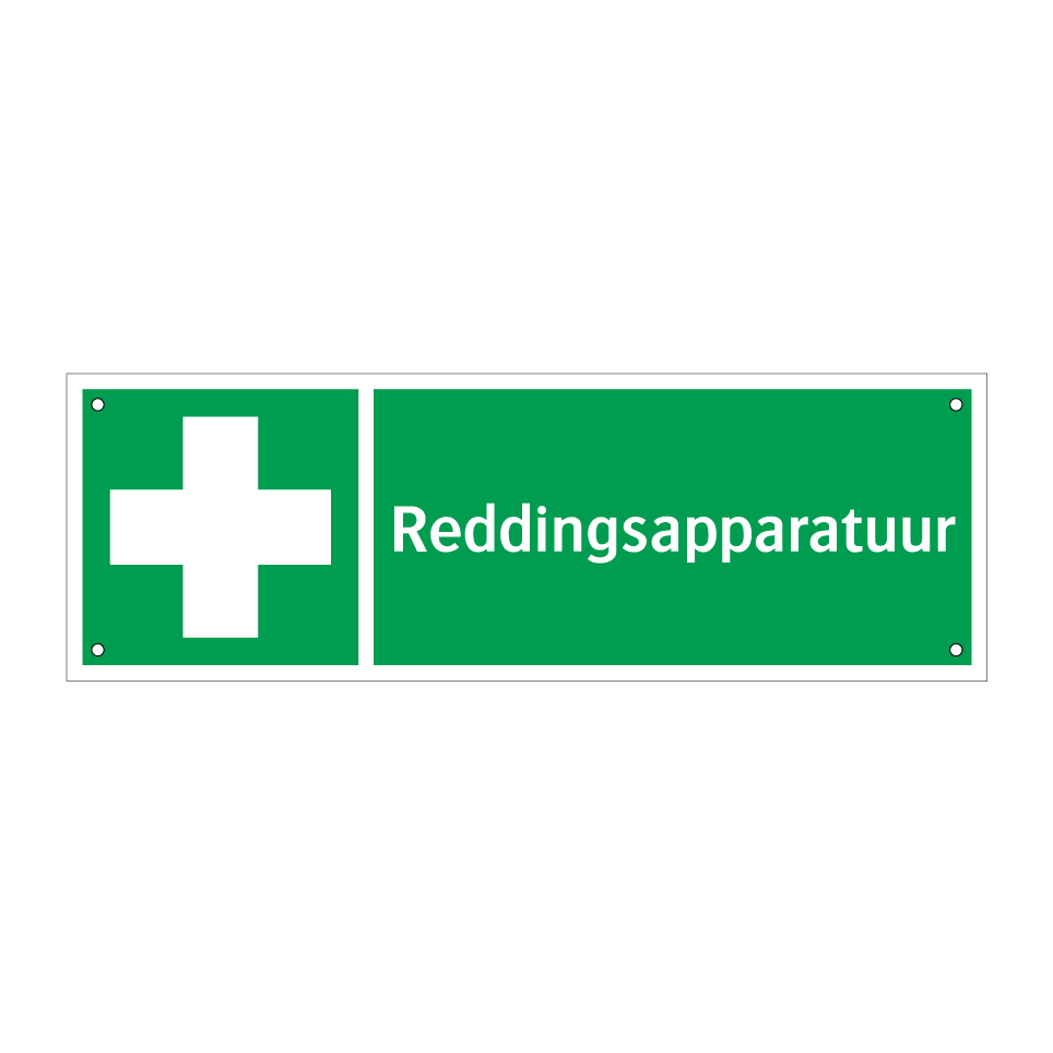 Deze noodbord is essentieel voor elke werkplek of openbare ruimte waar veiligheid een prioriteit is. Het bord geeft duidelijk aan waar reddingsapparatuur te vinden is, wat cruciaal is in noodsituaties. Plaats Dit bordje op goed zichtbare locaties zoals gangen, bij nooduitgangen, in fabrieken, kantoren, en andere drukbezochte gebieden. Door de opvallende groene kleur en witte tekst met symbool, trekt het direct de aandacht en helpt het mensen snel de benodigde reddingsmiddelen te vinden. Zorg ervoor dat iedereen in uw omgeving weet waar de reddingsapparatuur zich bevindt door dit noodbord strategisch te plaatsen.