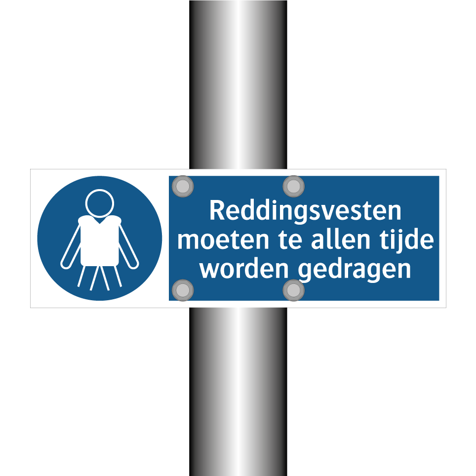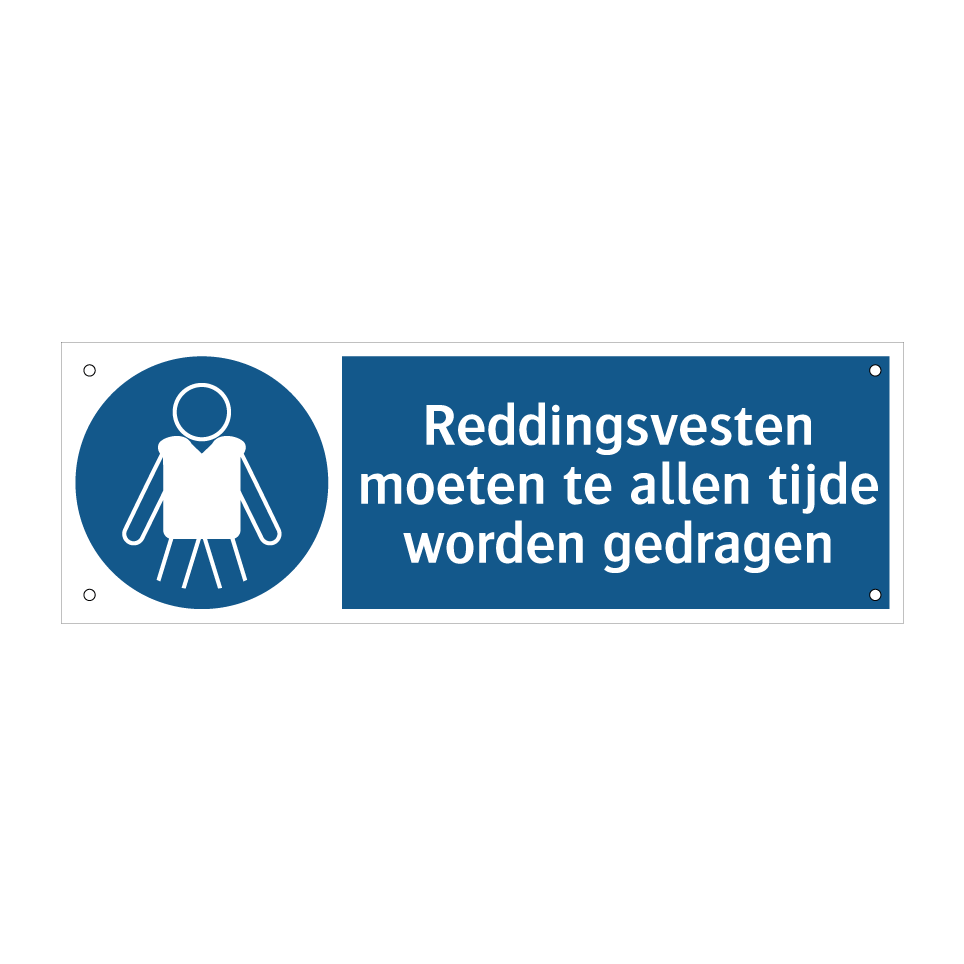 Verplichte bord met de tekst Reddingsvesten moeten te allen tijde worden gedragen