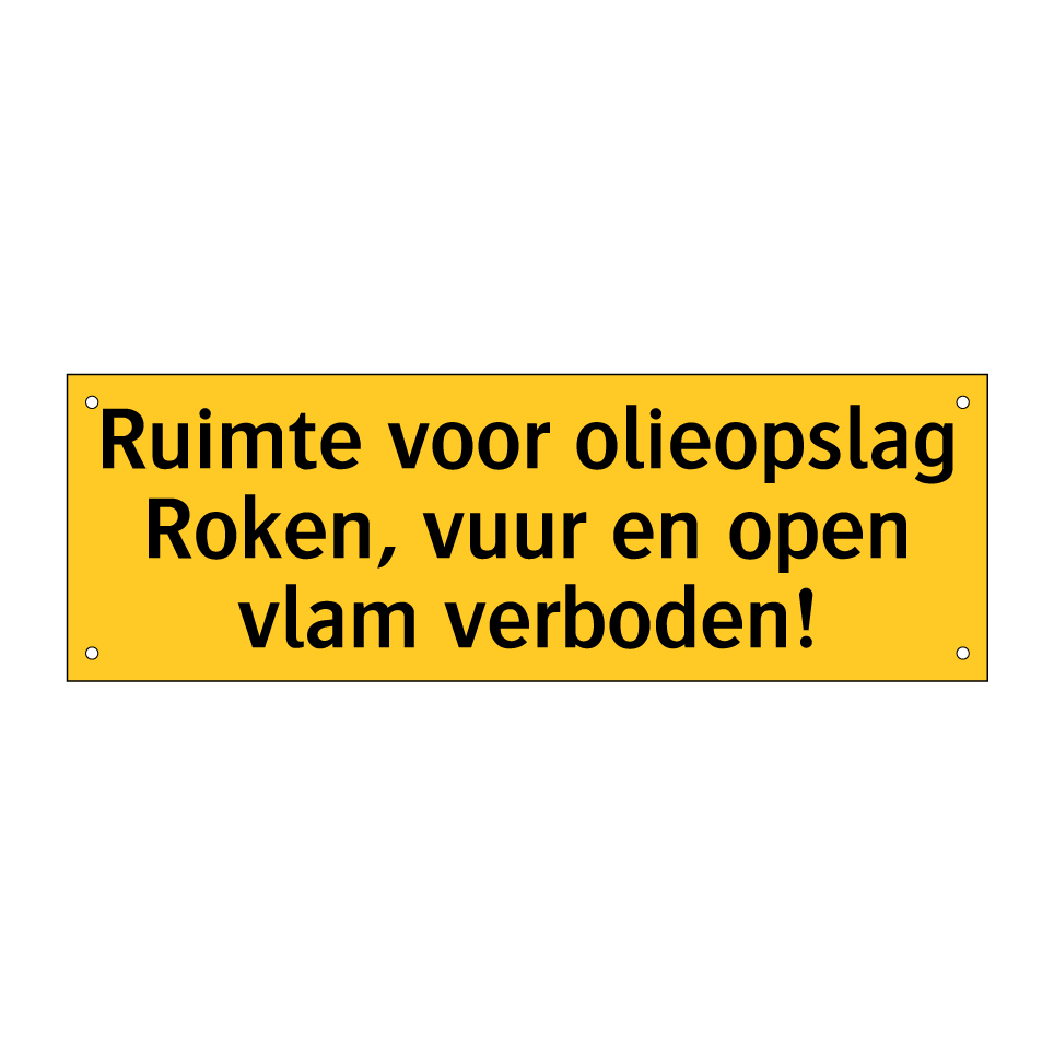 Waarschuwingsbord met de tekst Ruimte voor olieopslag Roken, vuur en open vlam verboden!