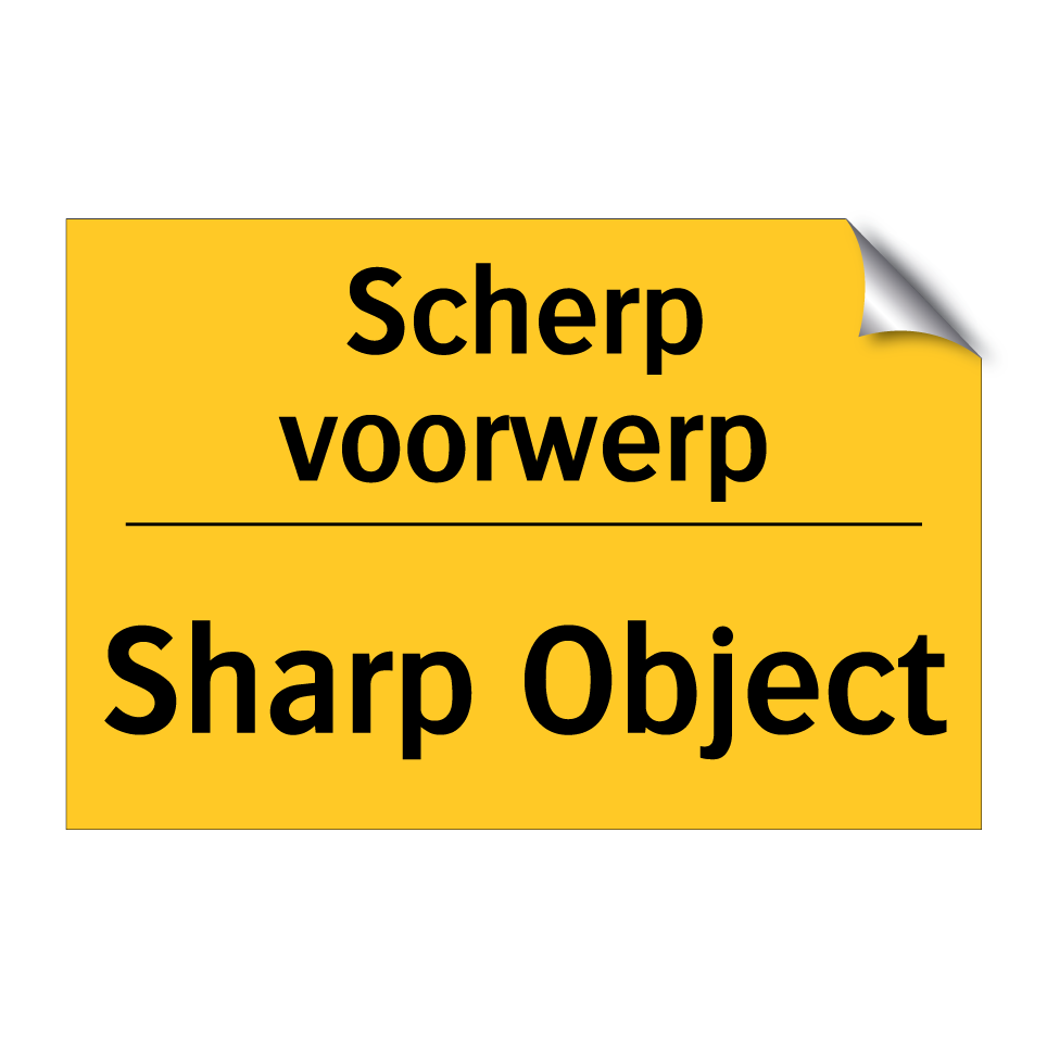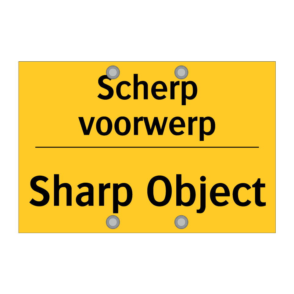 Waarschuwingsbord met de tekst Scherp voorwerp / Sharp Object