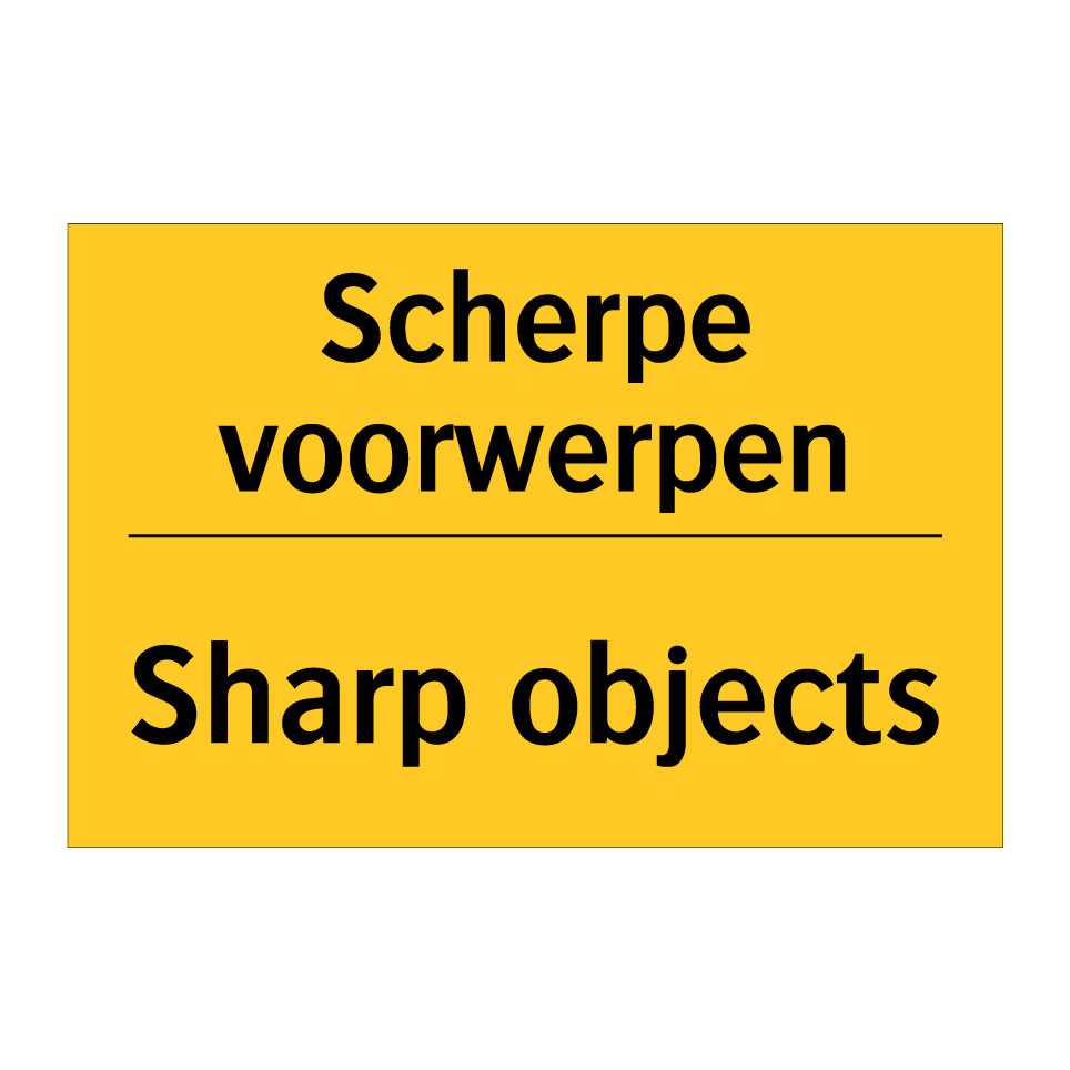 Waarschuwingsbord met de tekst Scherpe voorwerpen / Sharp objects