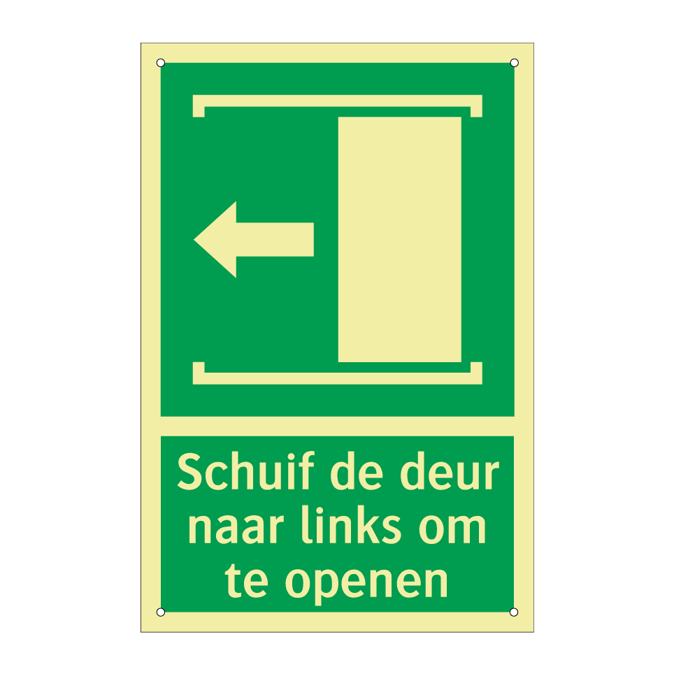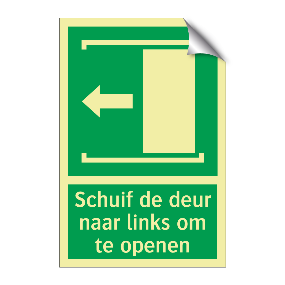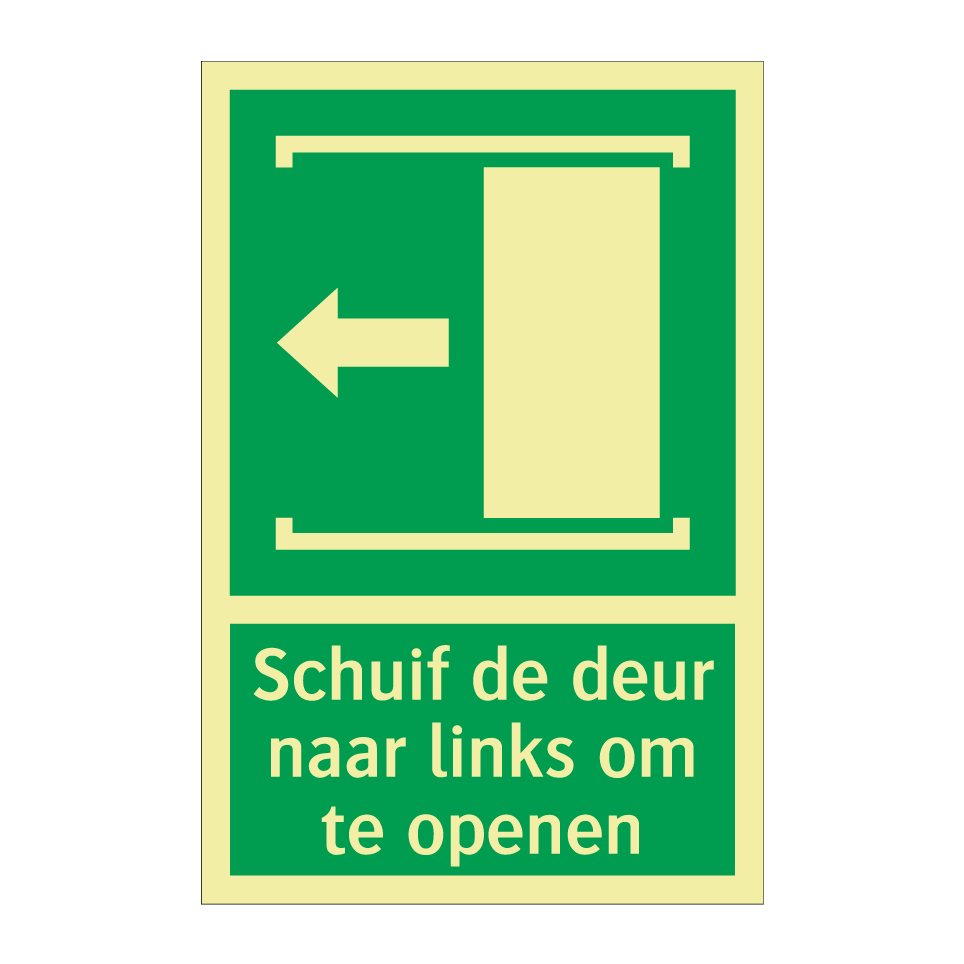 Noodbord met tekst Schuif de deur naar links om te openen