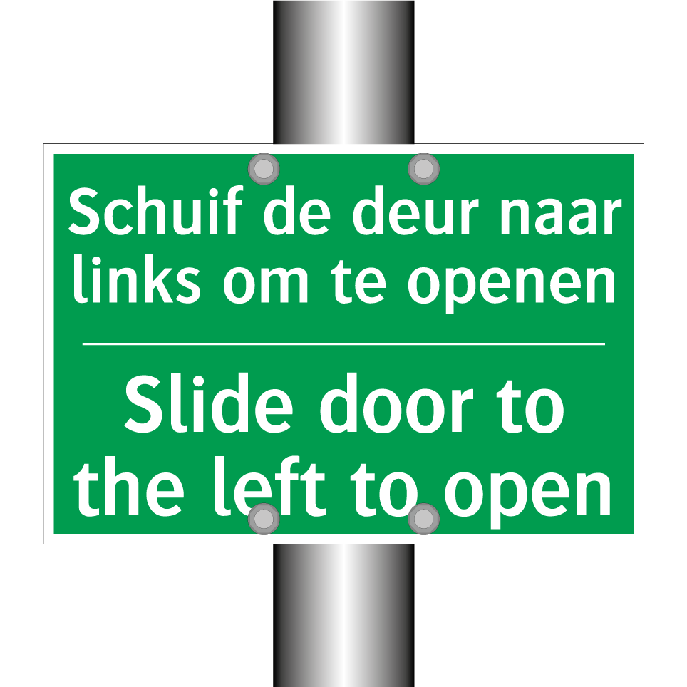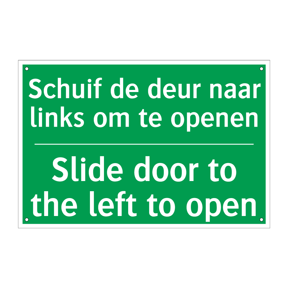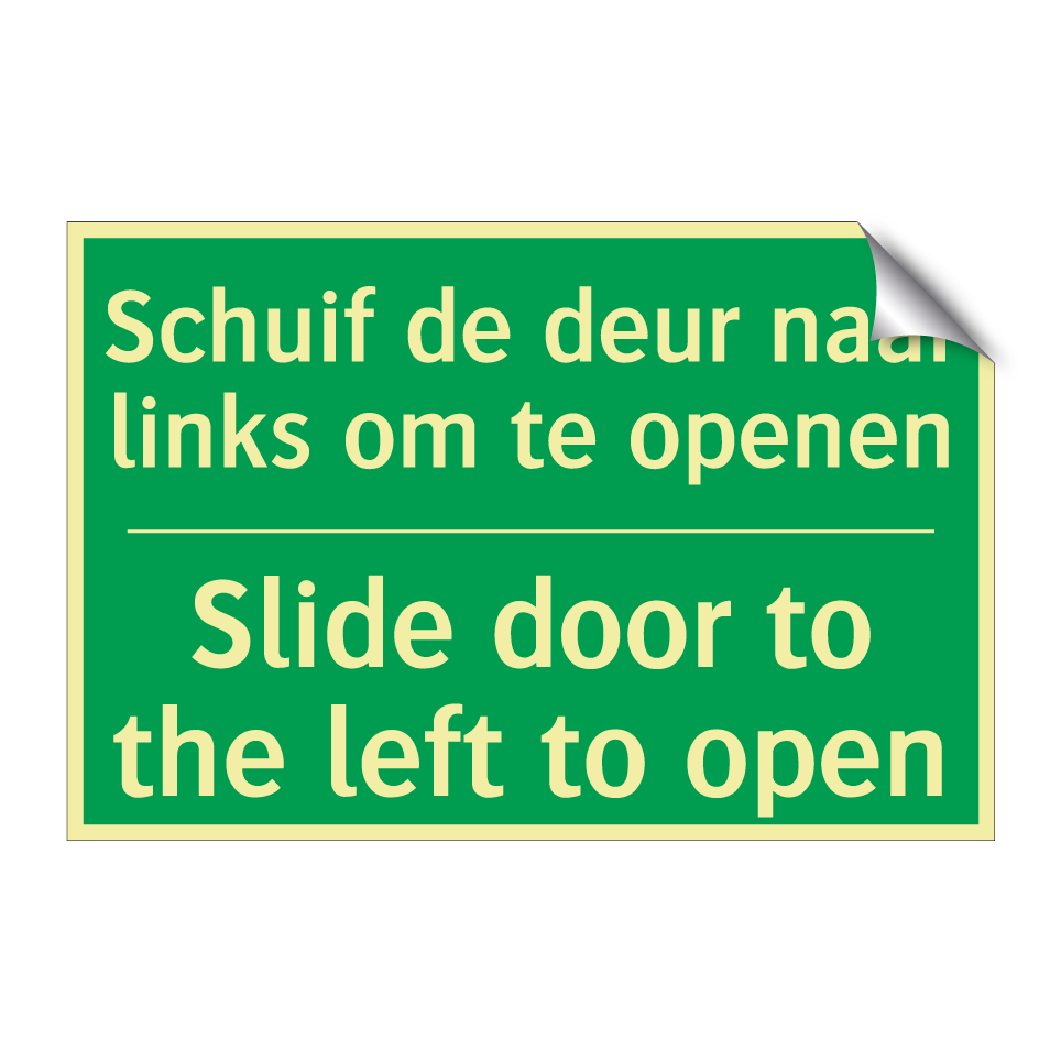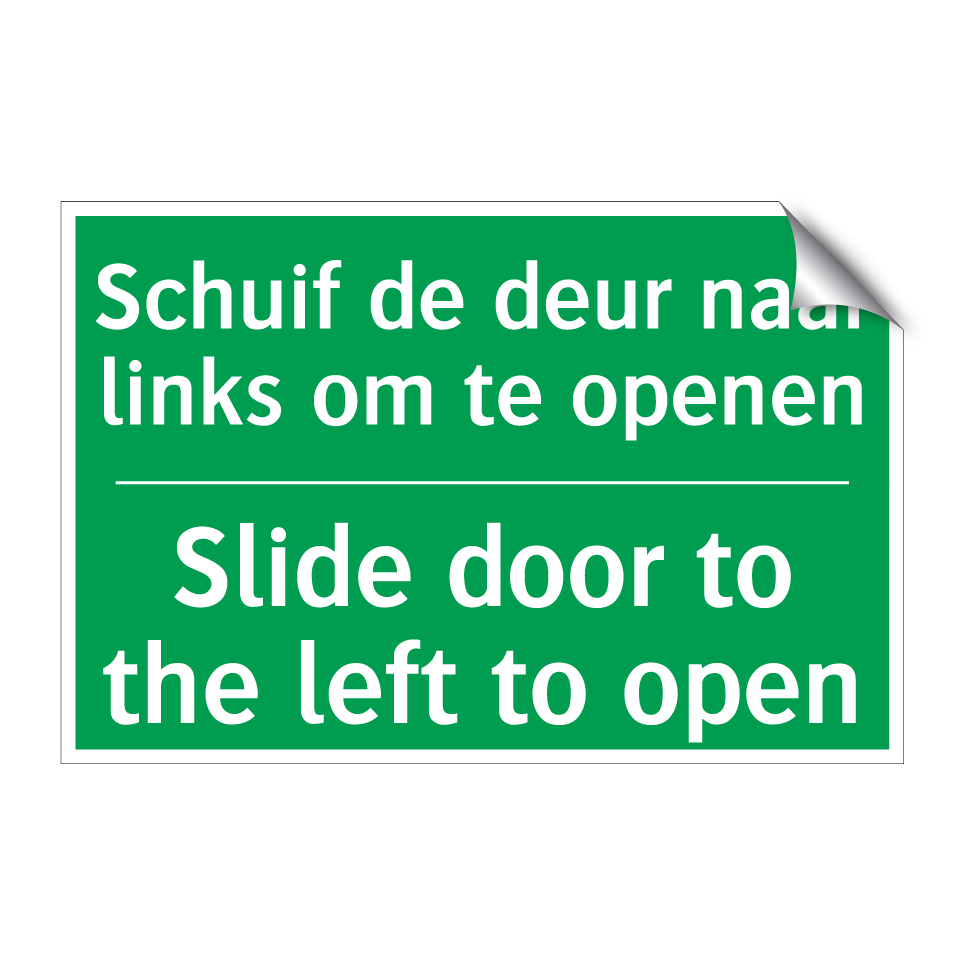 Noodbord met tekst Schuif de deur naar links om te openen / Slide door to the left to open