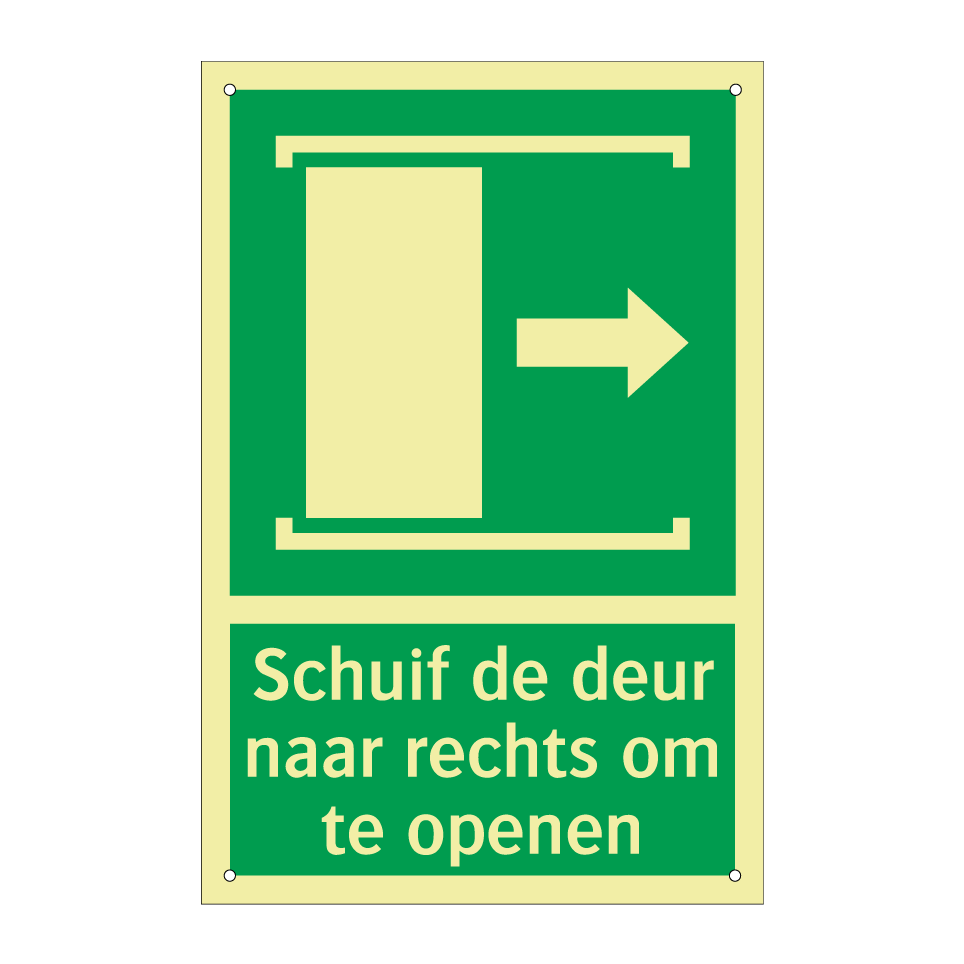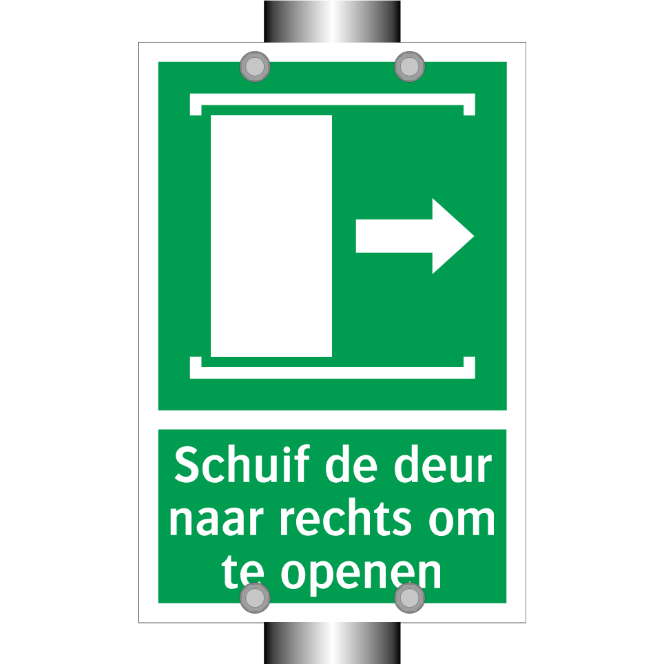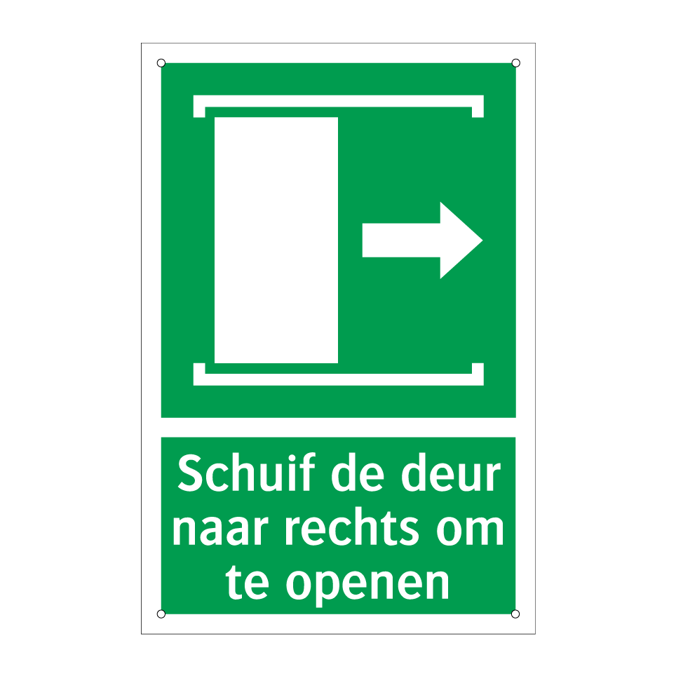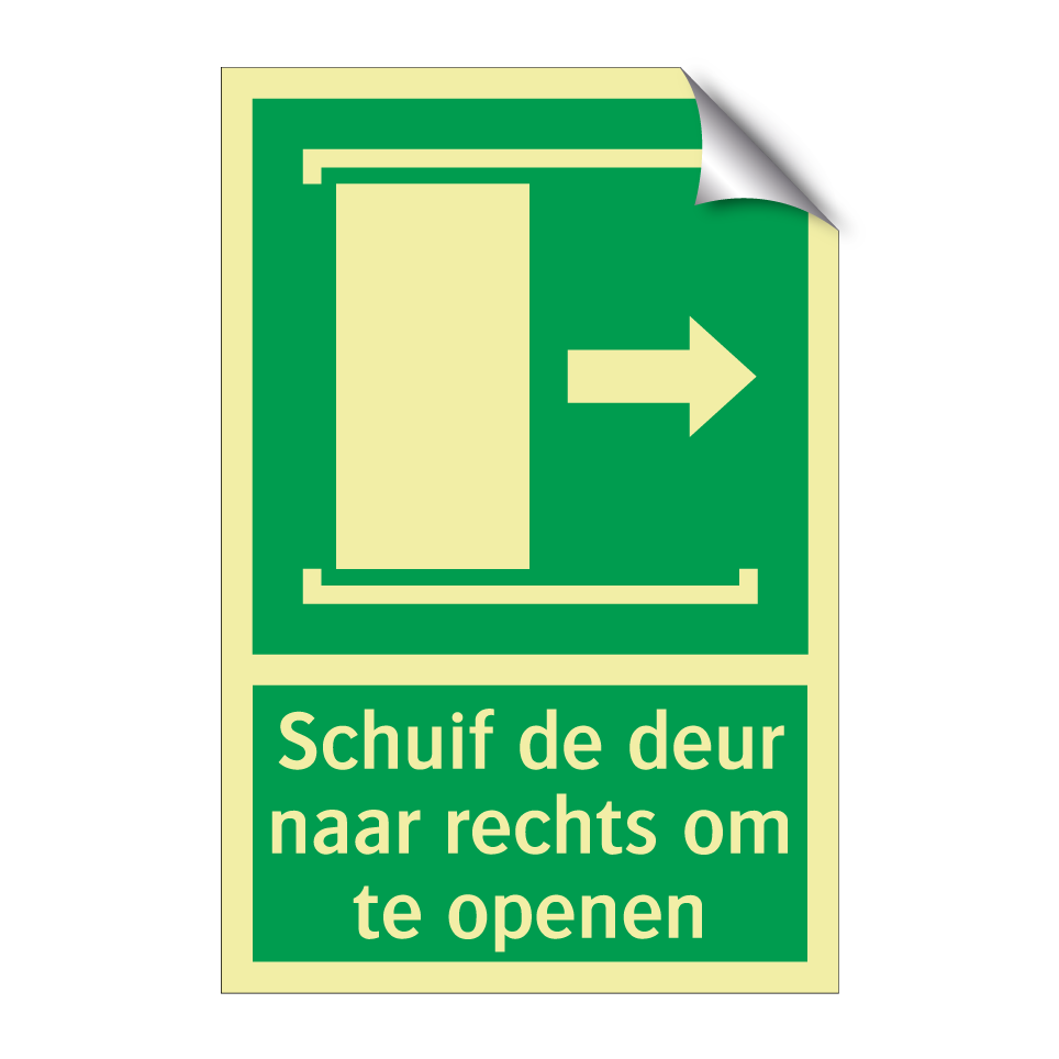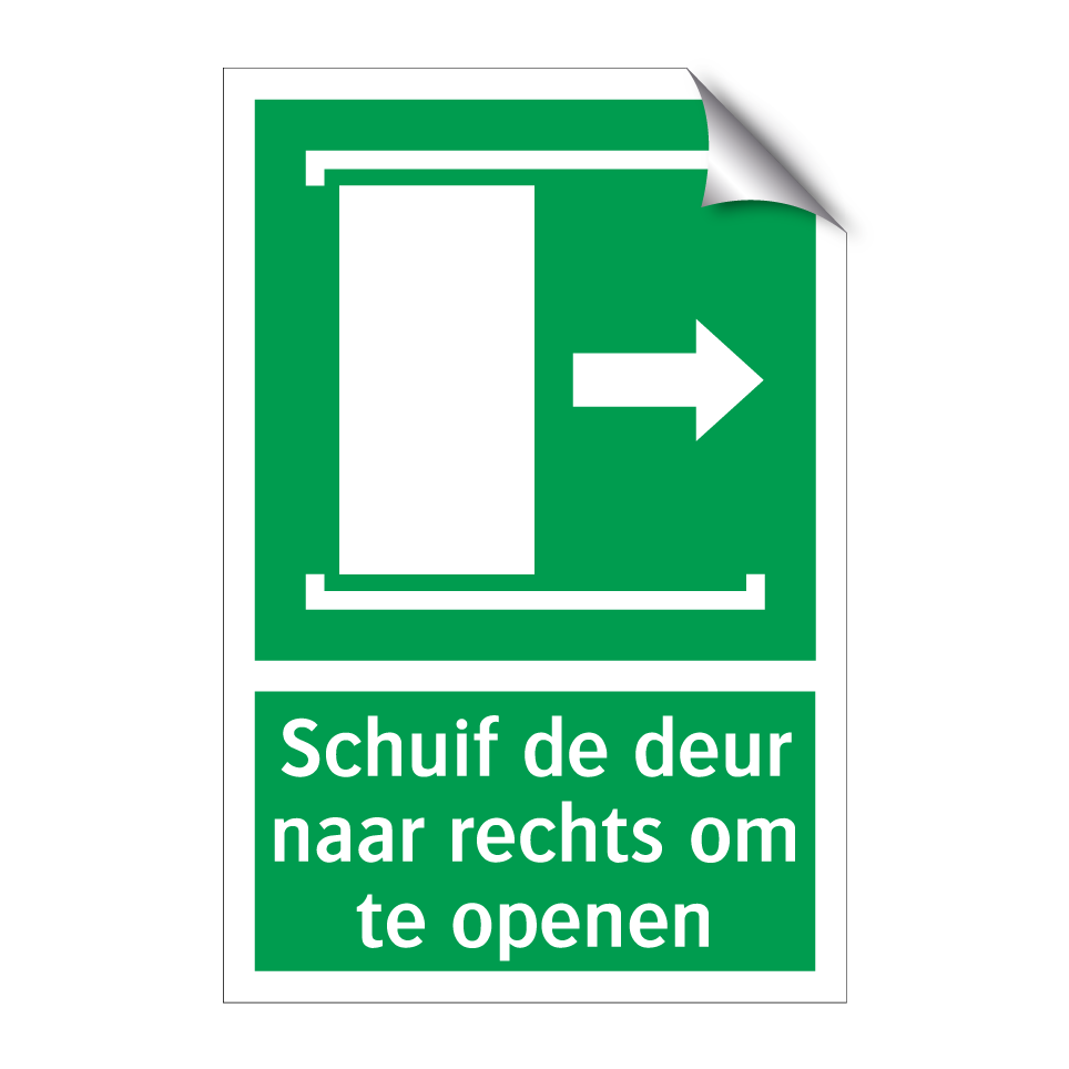 Noodbord met tekst Schuif de deur naar rechts om te openen