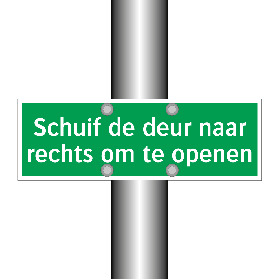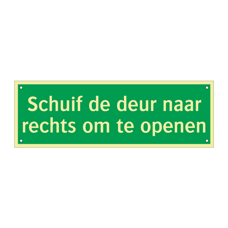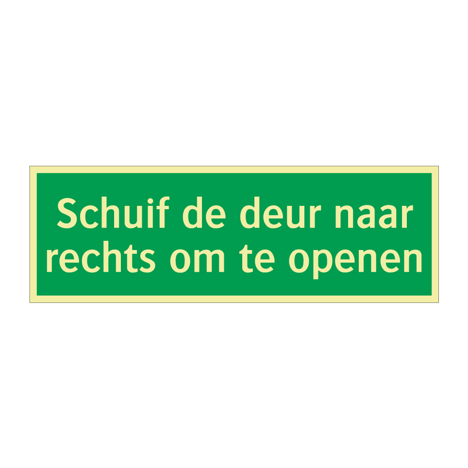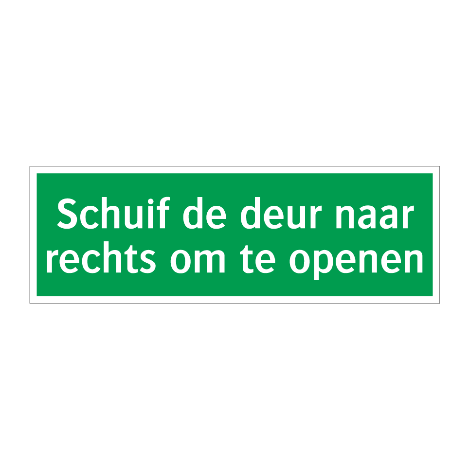 Noodbord met tekst Schuif de deur naar rechts om te openen