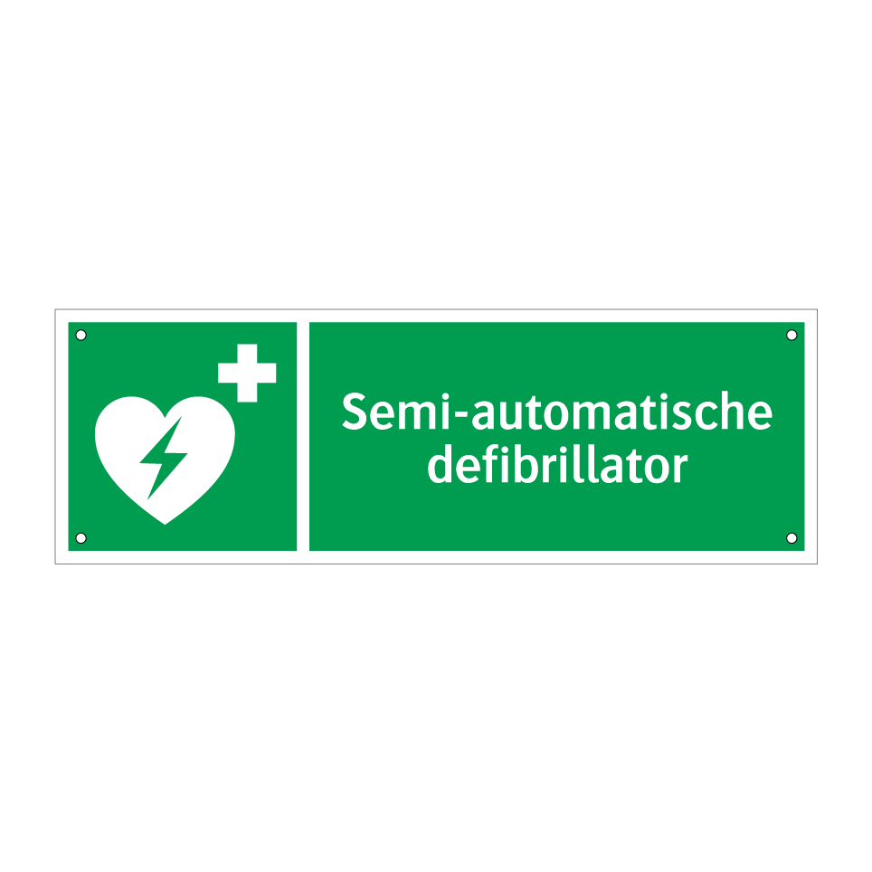 Deze noodbord is essentieel voor elke openbare ruimte waar een semi-automatische defibrillator beschikbaar is. Het bord is ontworpen om snel en duidelijk de locatie van de defibrillator aan te geven, wat van cruciaal belang kan zijn in noodsituaties. Plaats Dit bordje op goed zichtbare plekken zoals gangen, ingangen, sportfaciliteiten, kantoren en scholen. Door de opvallende groene kleur en witte tekst met symbool, trekt het direct de aandacht en helpt het om levens te redden door snelle toegang tot de defibrillator te waarborgen. Zorg ervoor dat iedereen weet waar de defibrillator zich bevindt met dit duidelijke en informatieve noodbord.