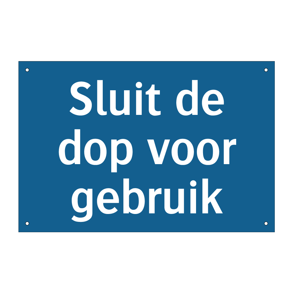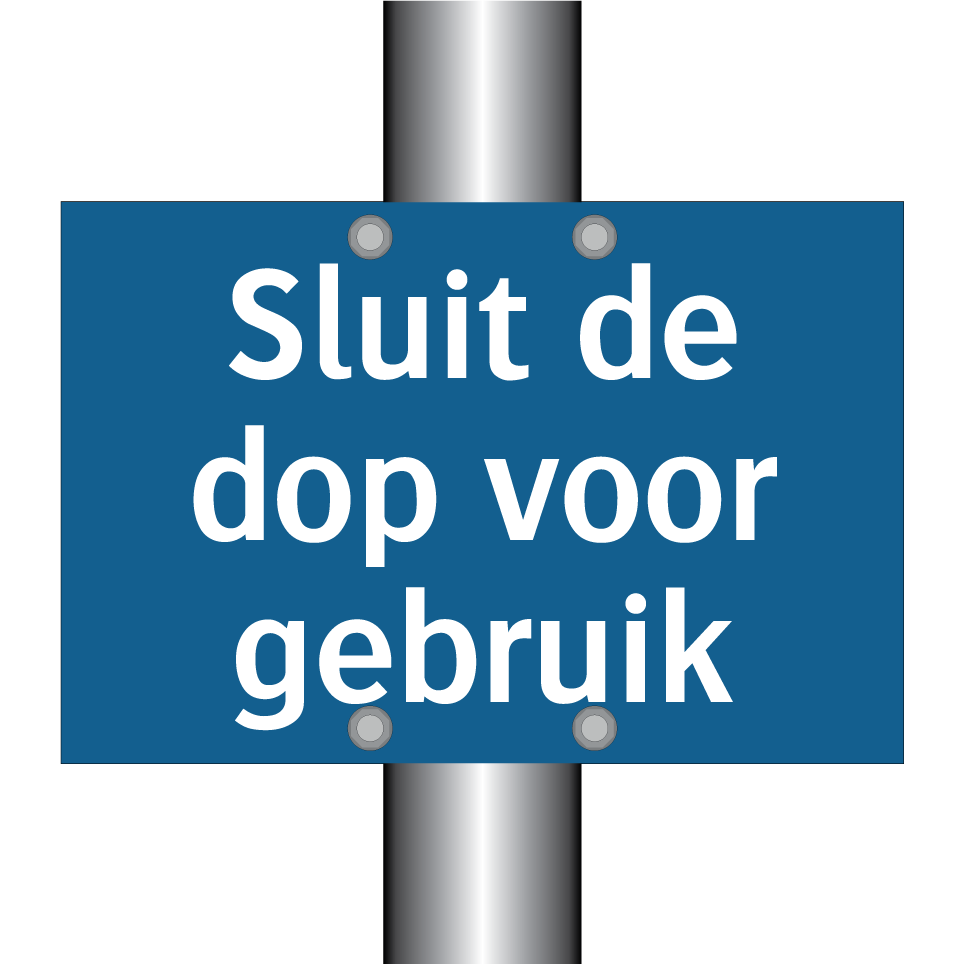 Verplichte bord met de tekst Sluit de dop voor gebruik