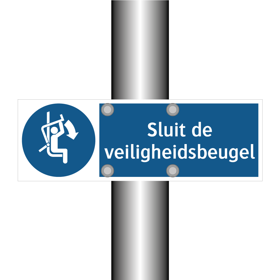 Verplichte bord met de tekst Sluit de veiligheidsbeugel