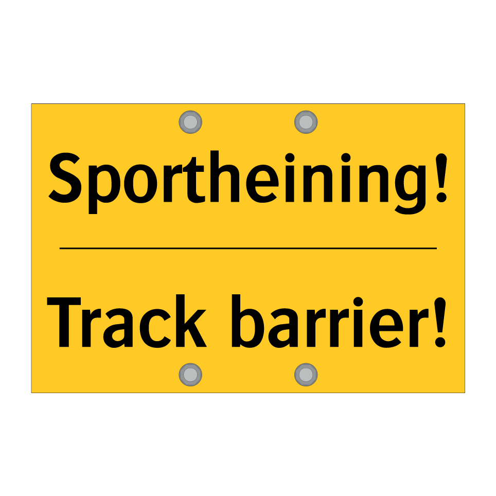 Waarschuwingsbord met de tekst Sportheining! / Track barrier!